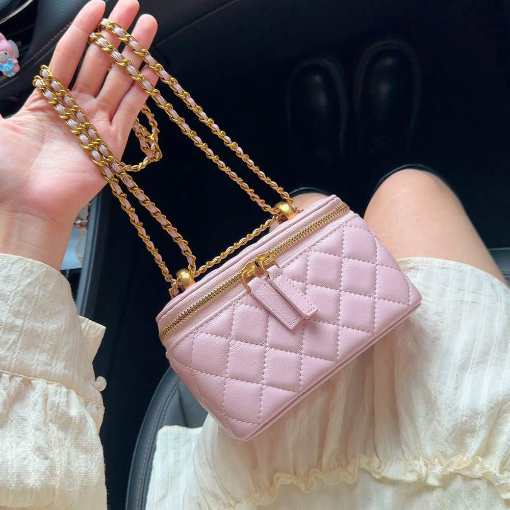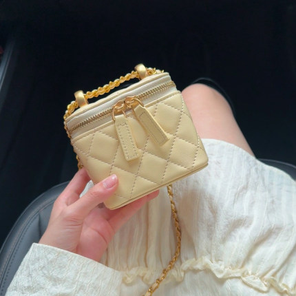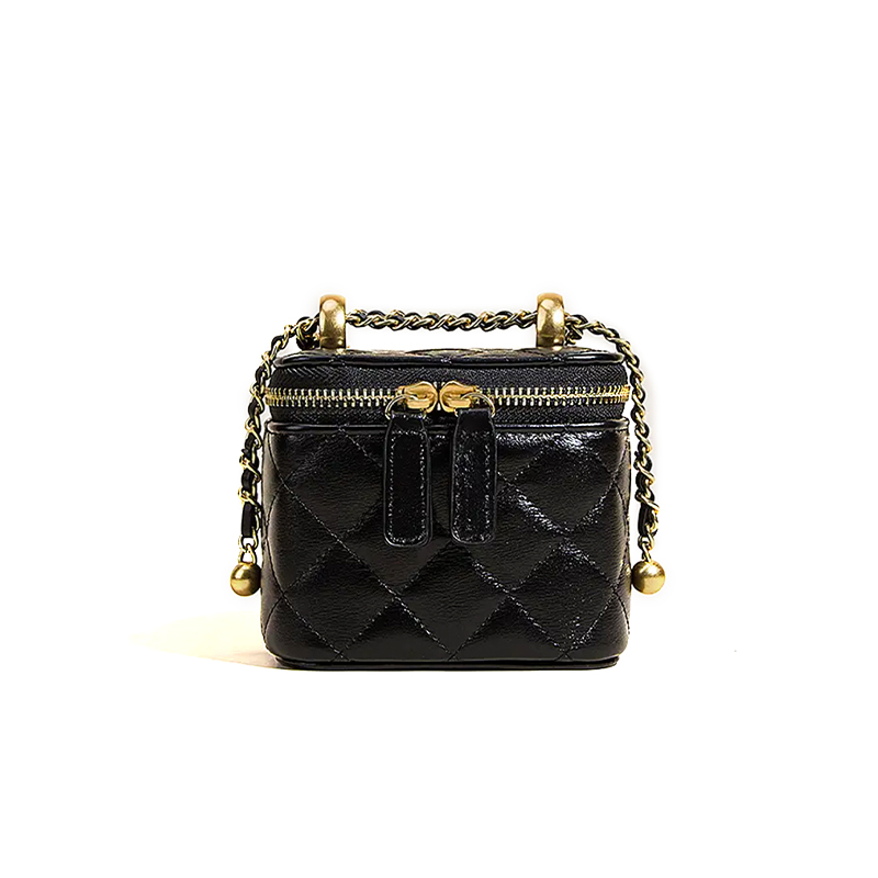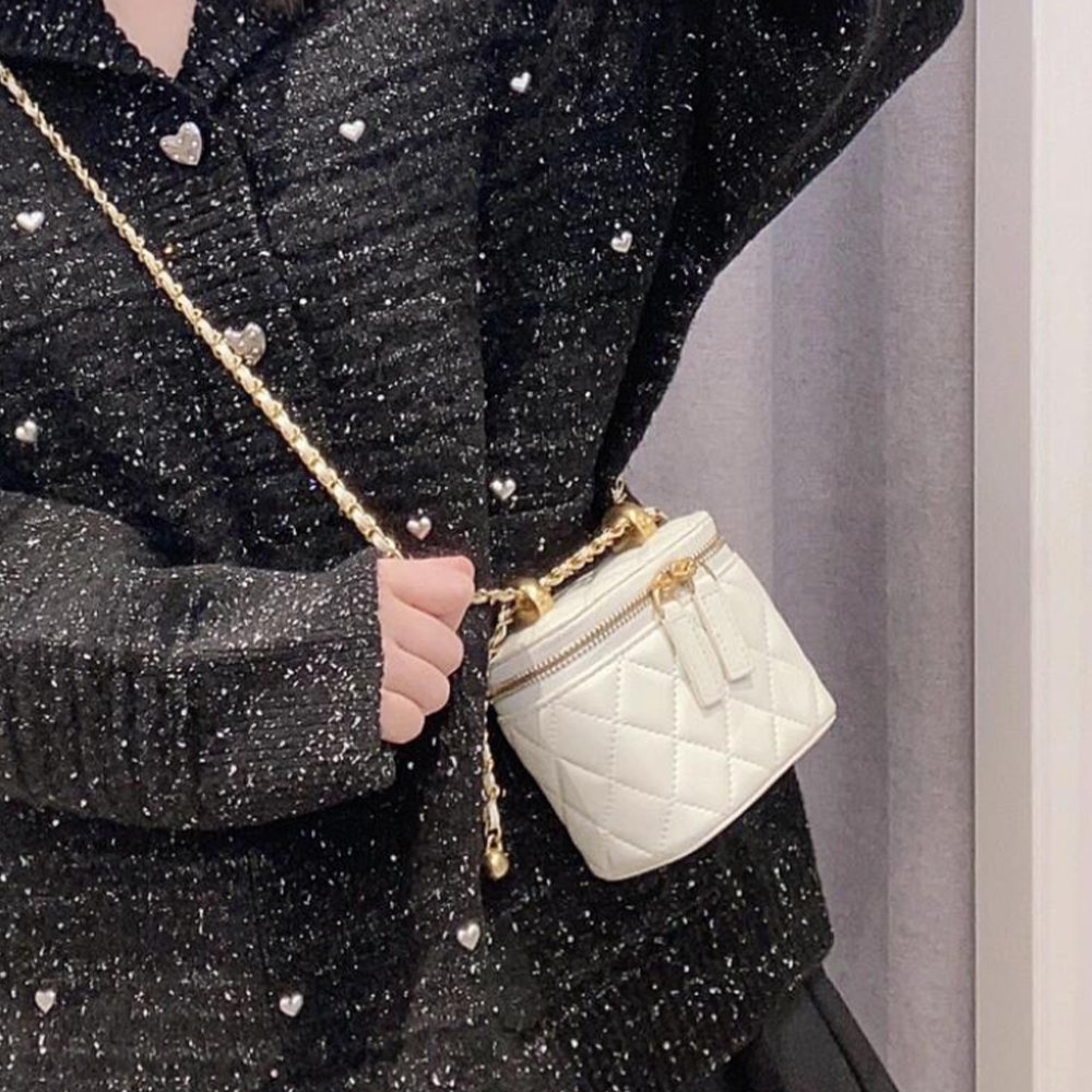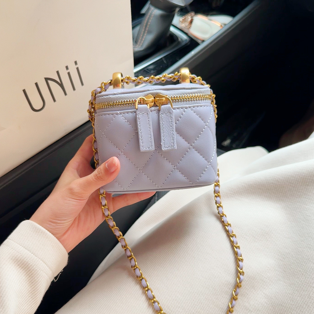 真皮小香风菱格链条包包女小方包双金球盒子包高级感单肩斜挎小包