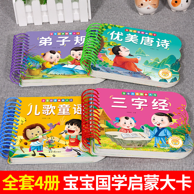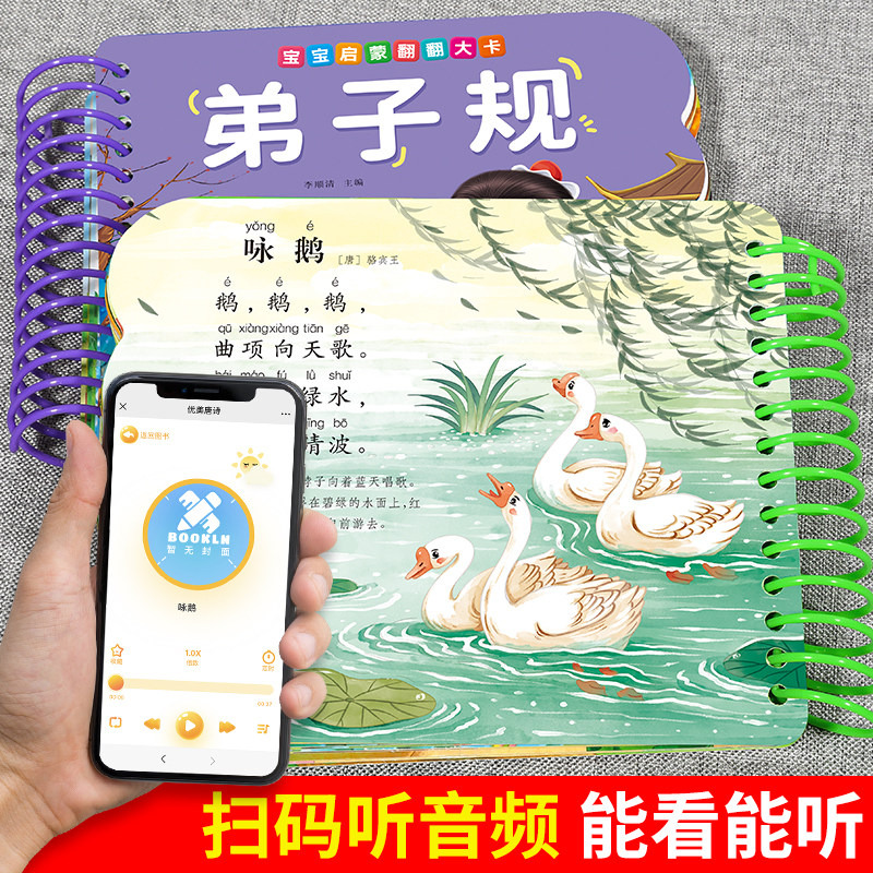 优美唐诗弟子规三字经儿歌童谣撕不烂的婴儿书绘本有声伴读1-2-3岁启蒙认知读物一两岁儿童幼儿园学前班宝宝早教学习古诗卡