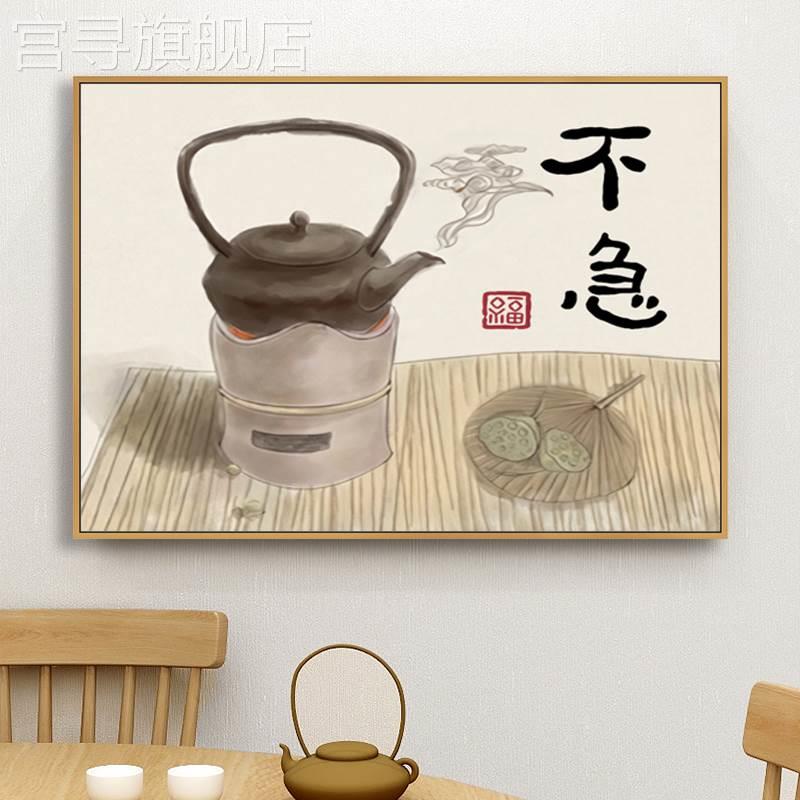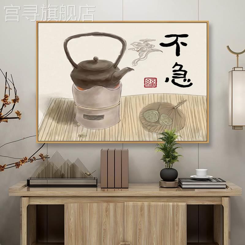 新中式餐厅装饰画客厅茶室禅意挂画入户玄关书房民宿背景墙面壁画