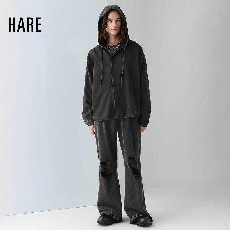 HARE卫衣男冬季新款时尚宽松连帽抽绳系扣复古日系外套282411