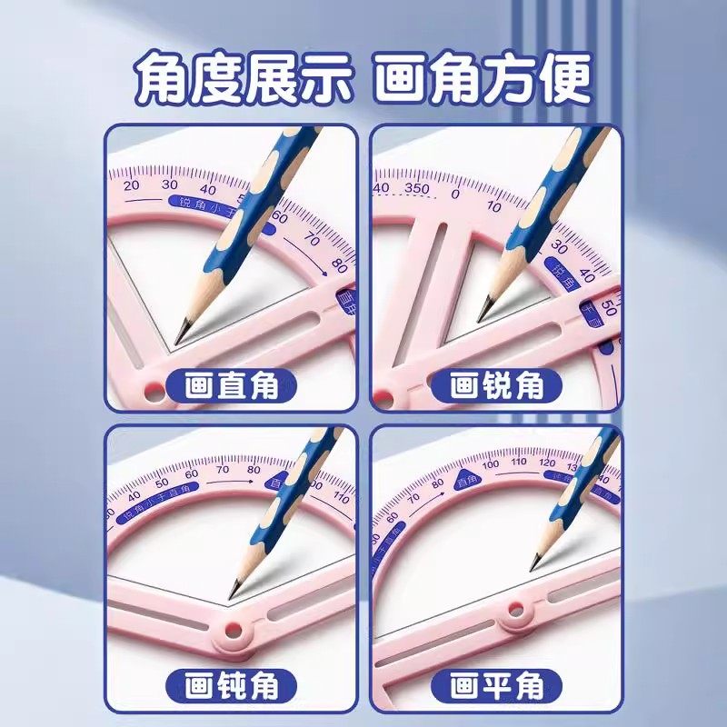 360度活动角教具量角器二三四年级多功能几何尺子小学生专用数学分解角认识儿童角度尺演示器直角三角板文具