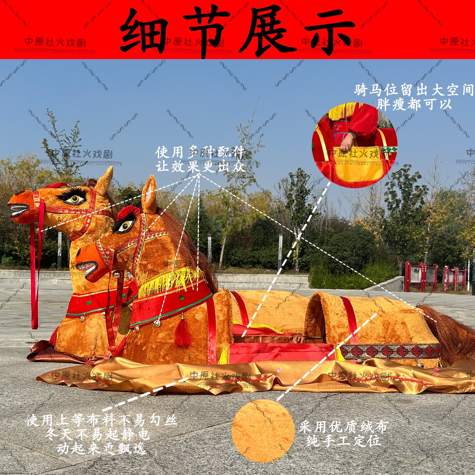 马年道具跑马灯社火春节表演毛驴旱船秧歌戏剧道具演出服仿真马匹
