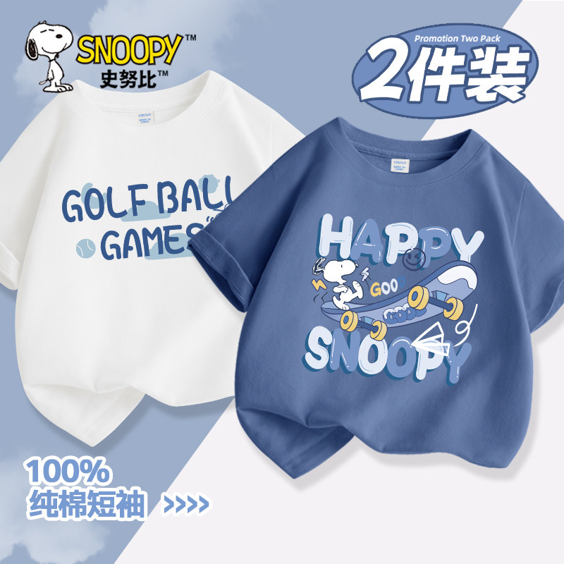 史努比男童t恤短袖纯棉上衣男孩夏装男大童夏季宽松童装儿童半袖