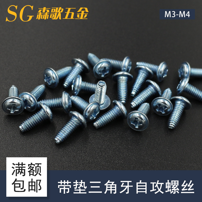 十字槽带垫三角牙自锁螺钉灯饰螺钉M3M4*4/5/6---20 SLS高强度