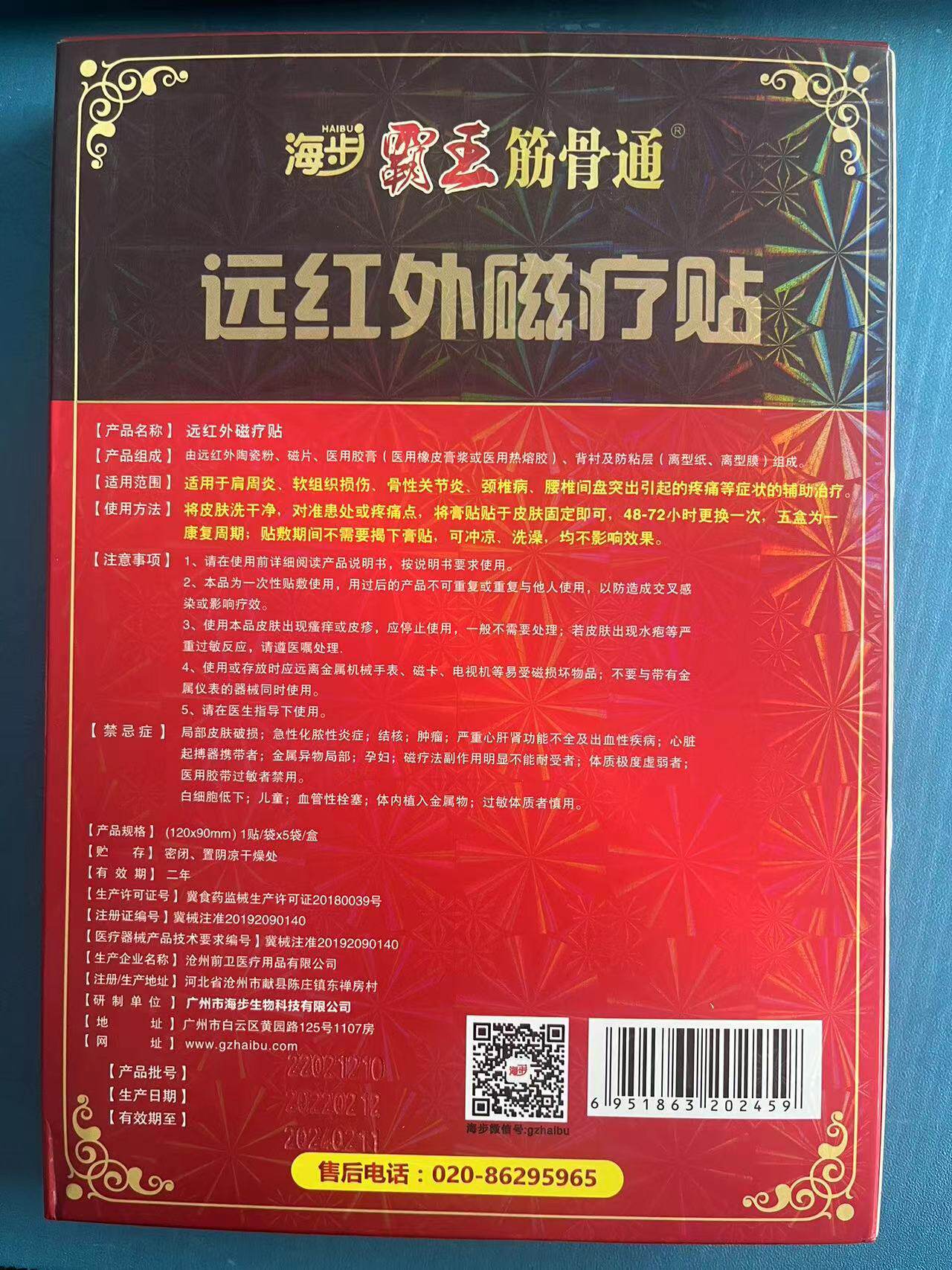海步霸王筋骨通肩周炎贴膏腰间盘突出膏贴腰椎盘远红外理疗磁疗膏
