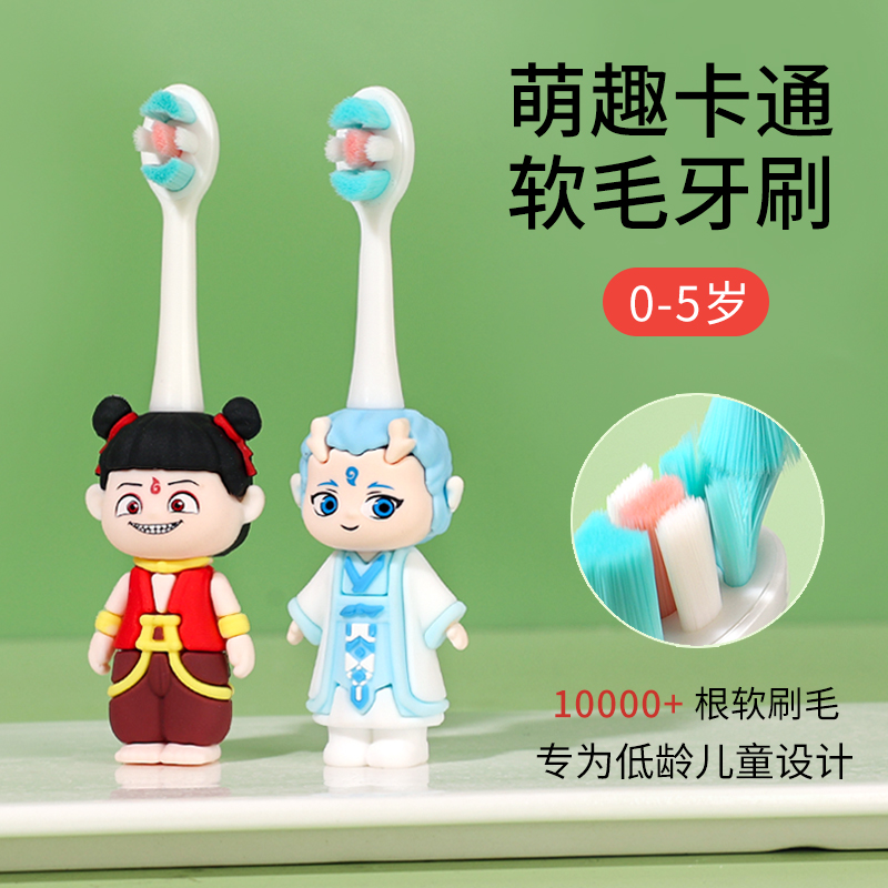 儿童牙刷软毛1-2-3-6以上哪吒敖丙卡通男女孩换牙期专用宝宝刷牙