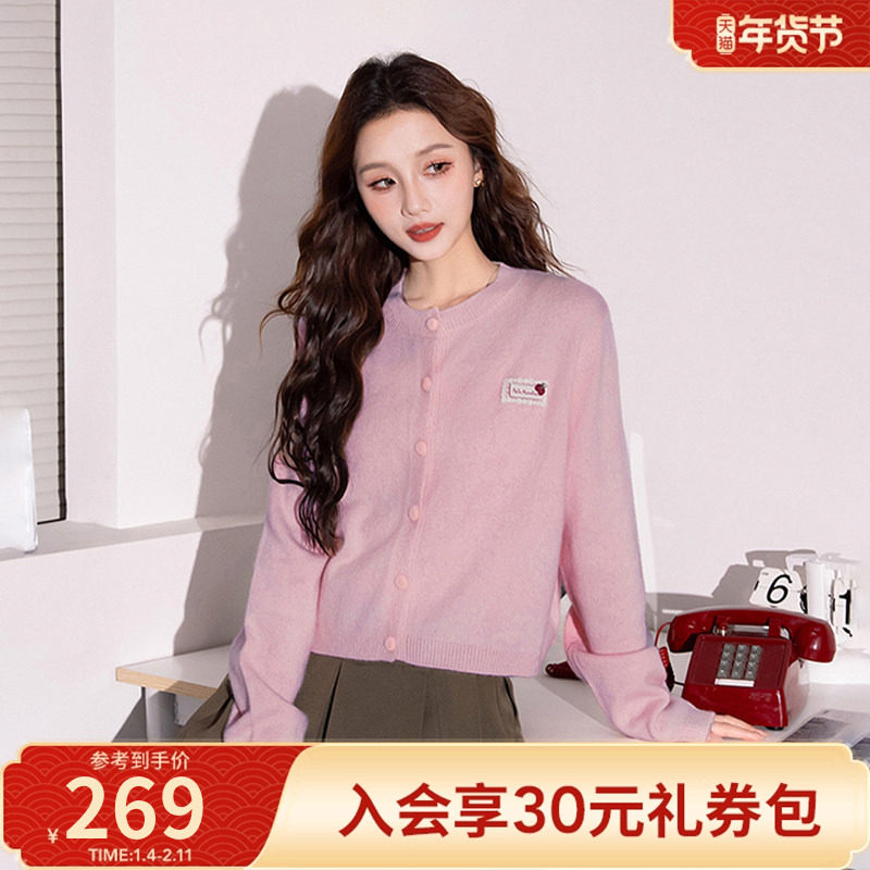 热风女士秋冬新款针织开衫山羊绒亲肤温柔千金风简约毛衣外套