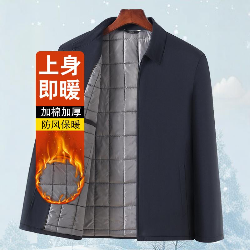 秋冬季爸爸外套加棉加厚70岁老人爷爷棉衣中老年男装夹克上衣棉袄
