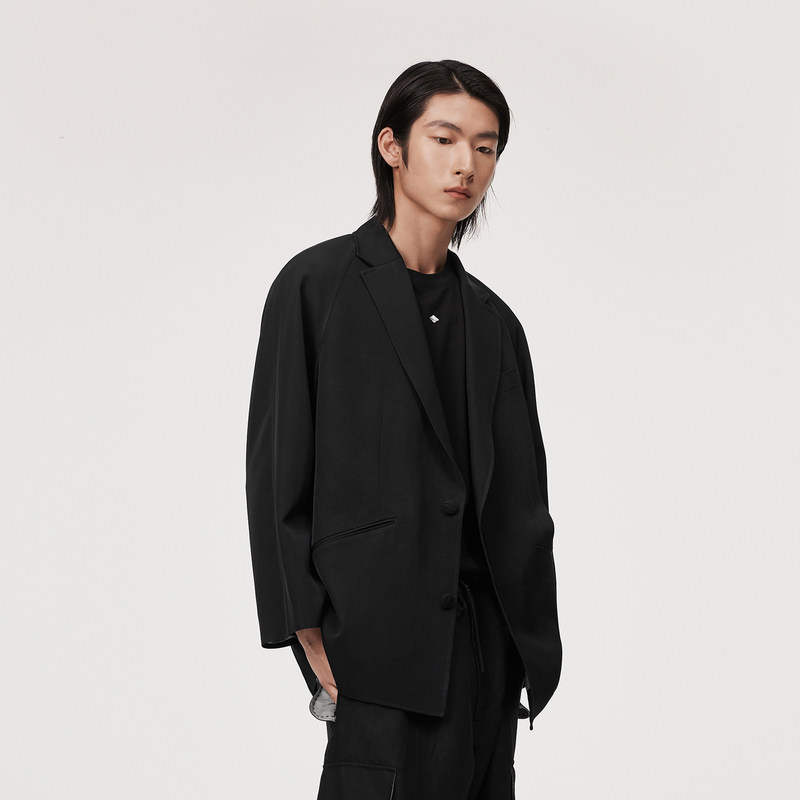 速写男装春秋新款单排扣西服宽松休闲时尚设计感潮流前卫西装外套