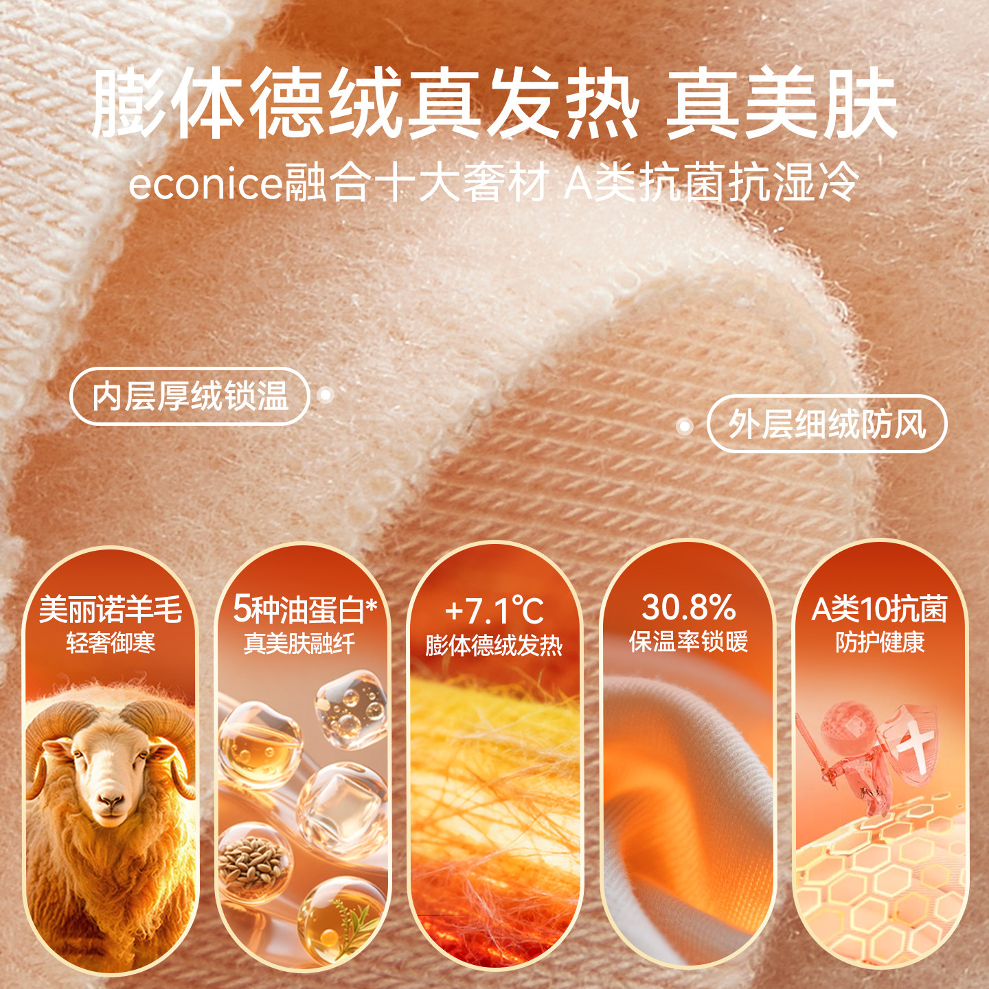 德绒羊毛发热美肤肌底秋衣秋裤女