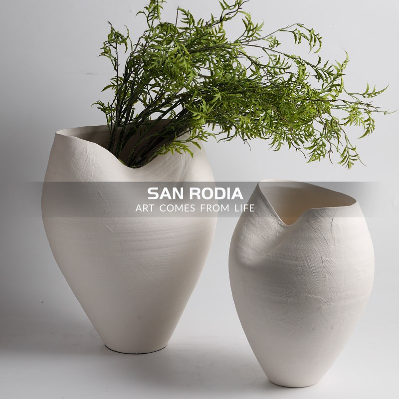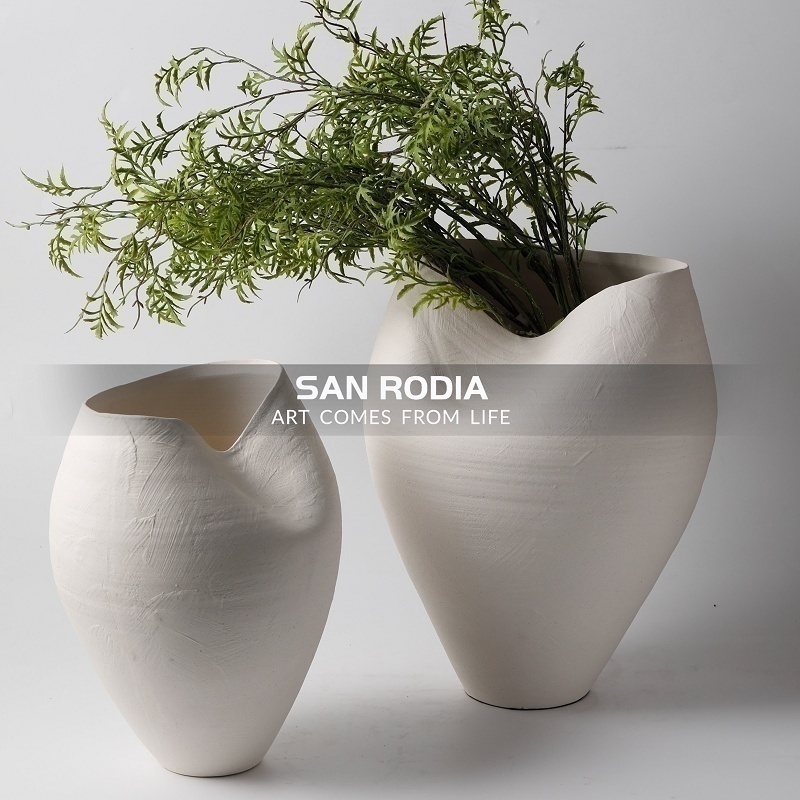 新中式侘寂风不规则口径陶瓷花瓶售楼处样板间民宿客厅餐桌插花器