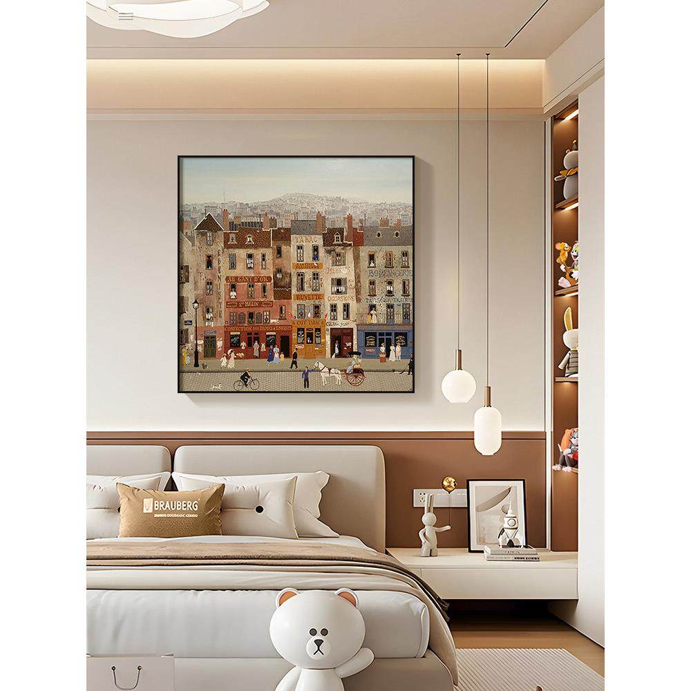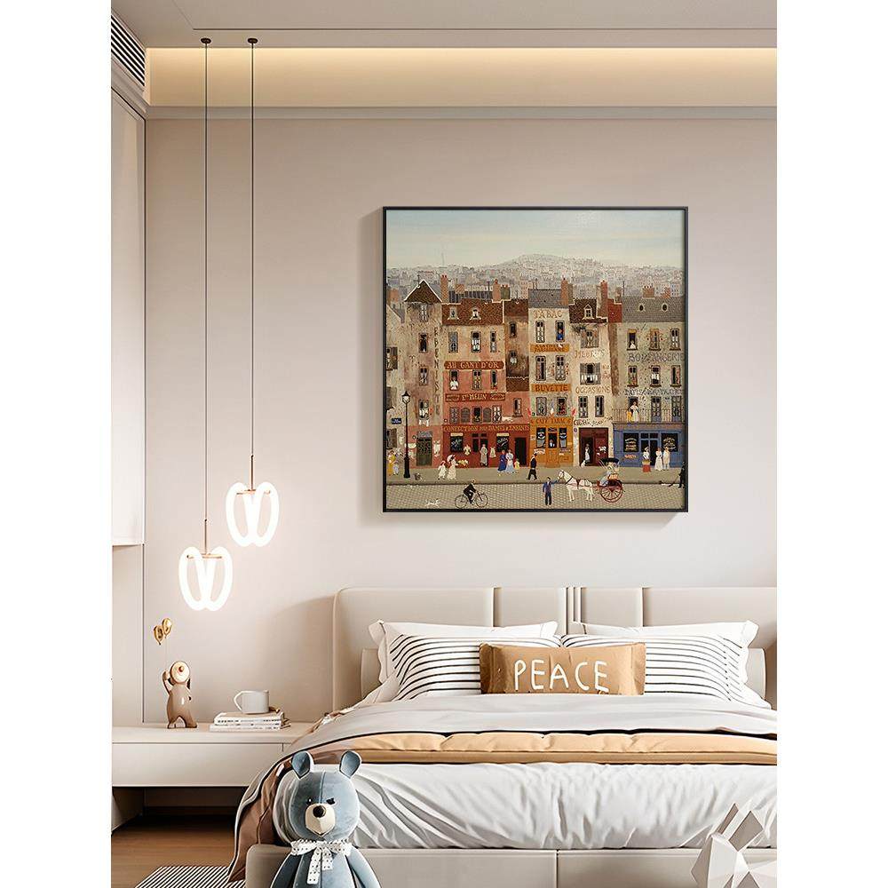 法式覆古莫兰迪艺术客厅沙发背景墙装饰画城市街景咖啡厅轻奢挂画