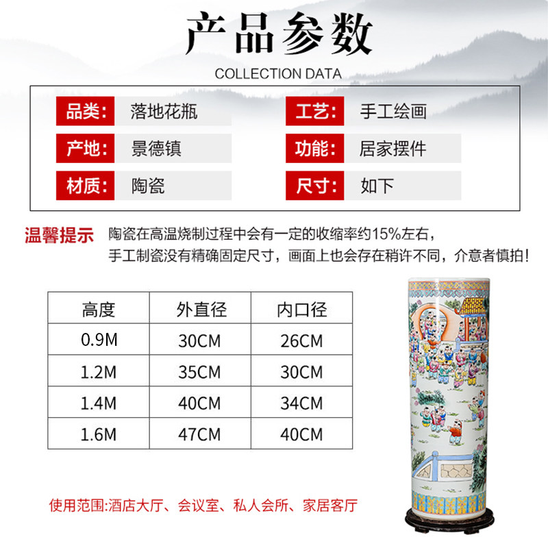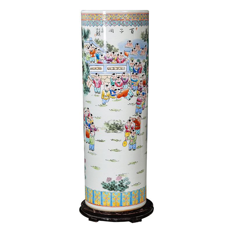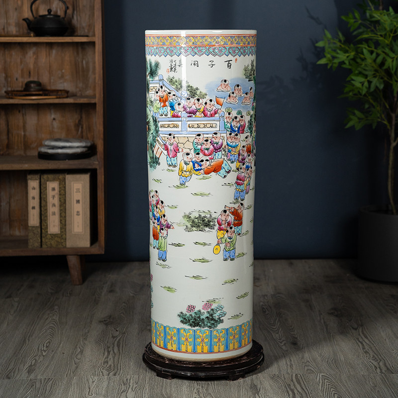 百子闹春手绘陶瓷落地大花瓶箭筒景德镇客厅玄关中式摆件乔迁送礼