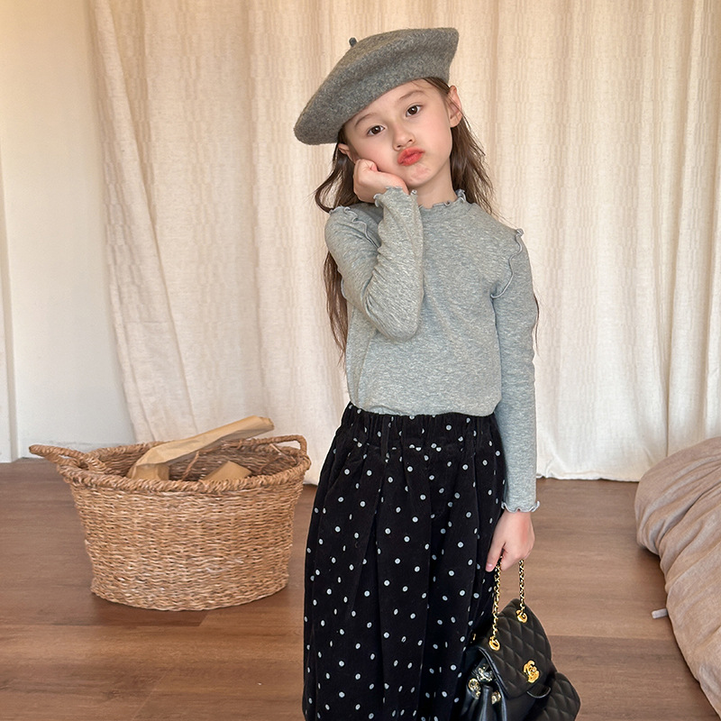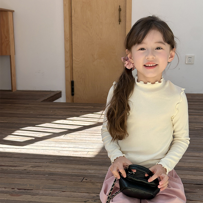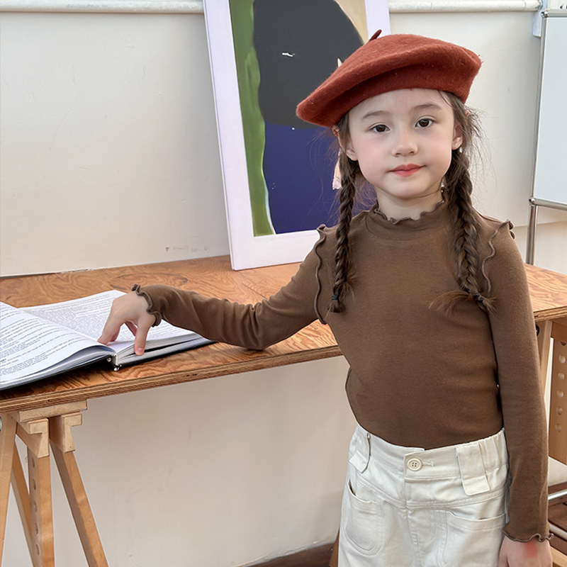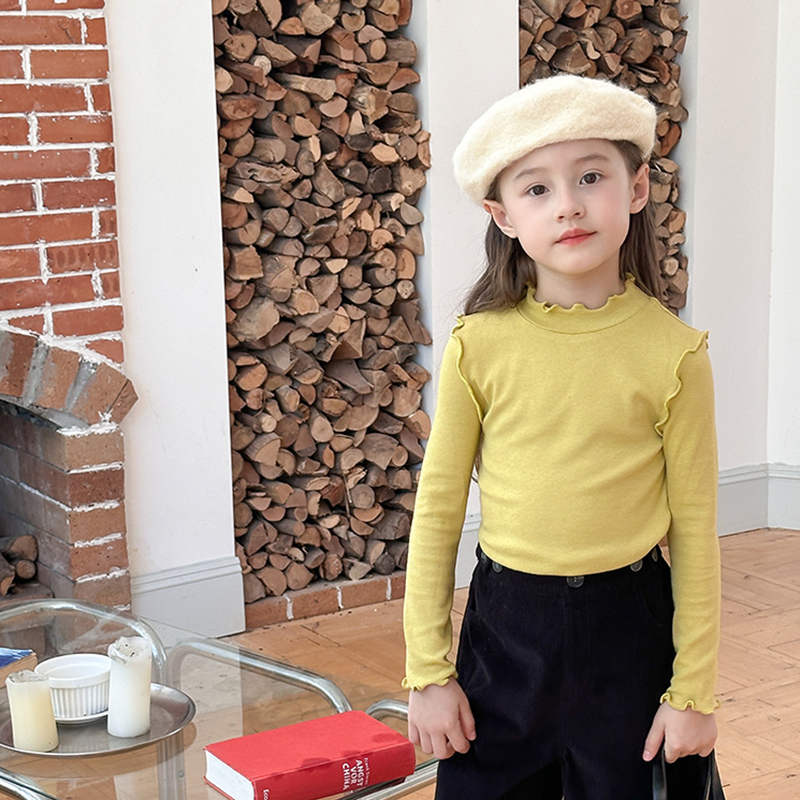 童装女童木耳边打底衫秋冬儿童纯棉中领内搭甜美女孩纯色长袖t恤