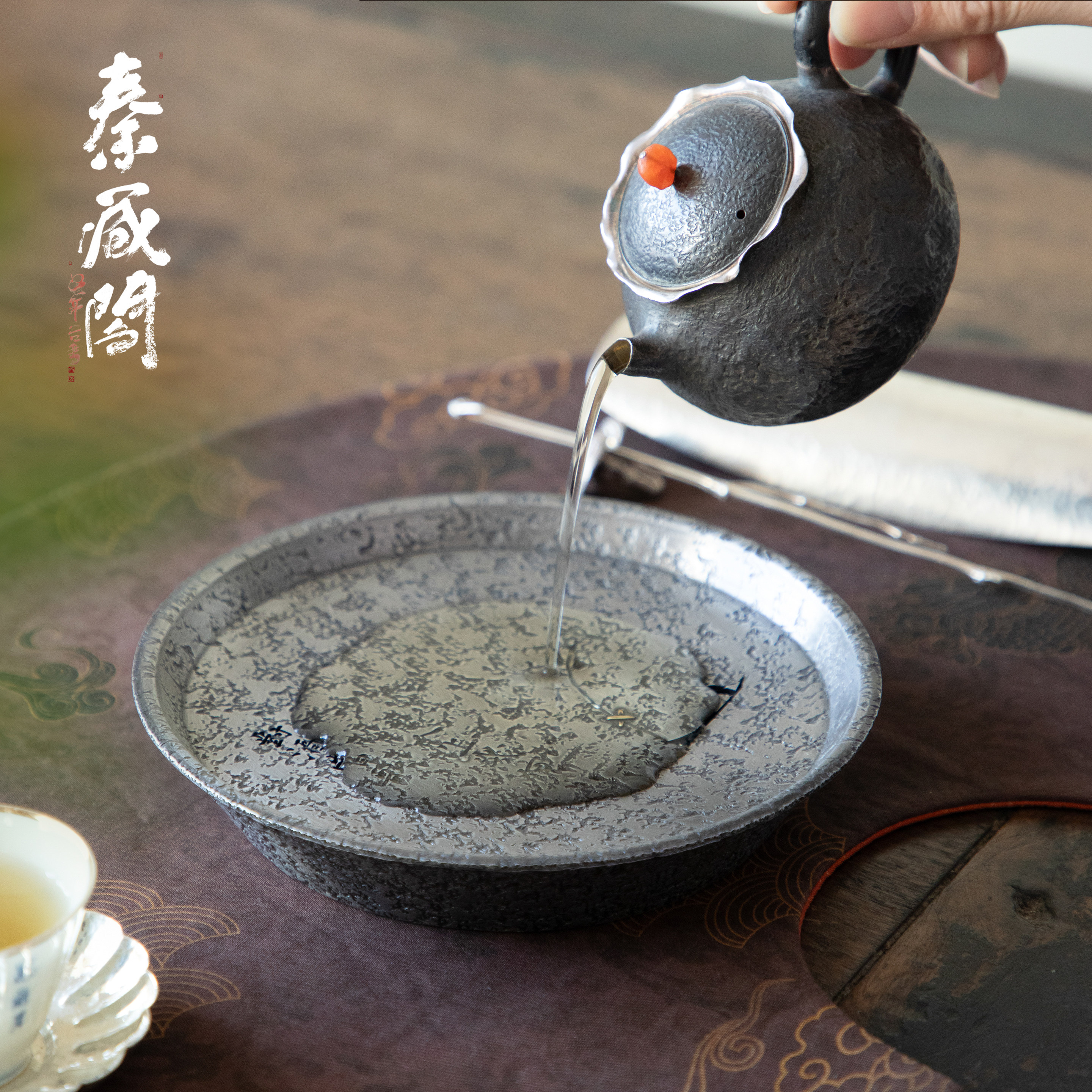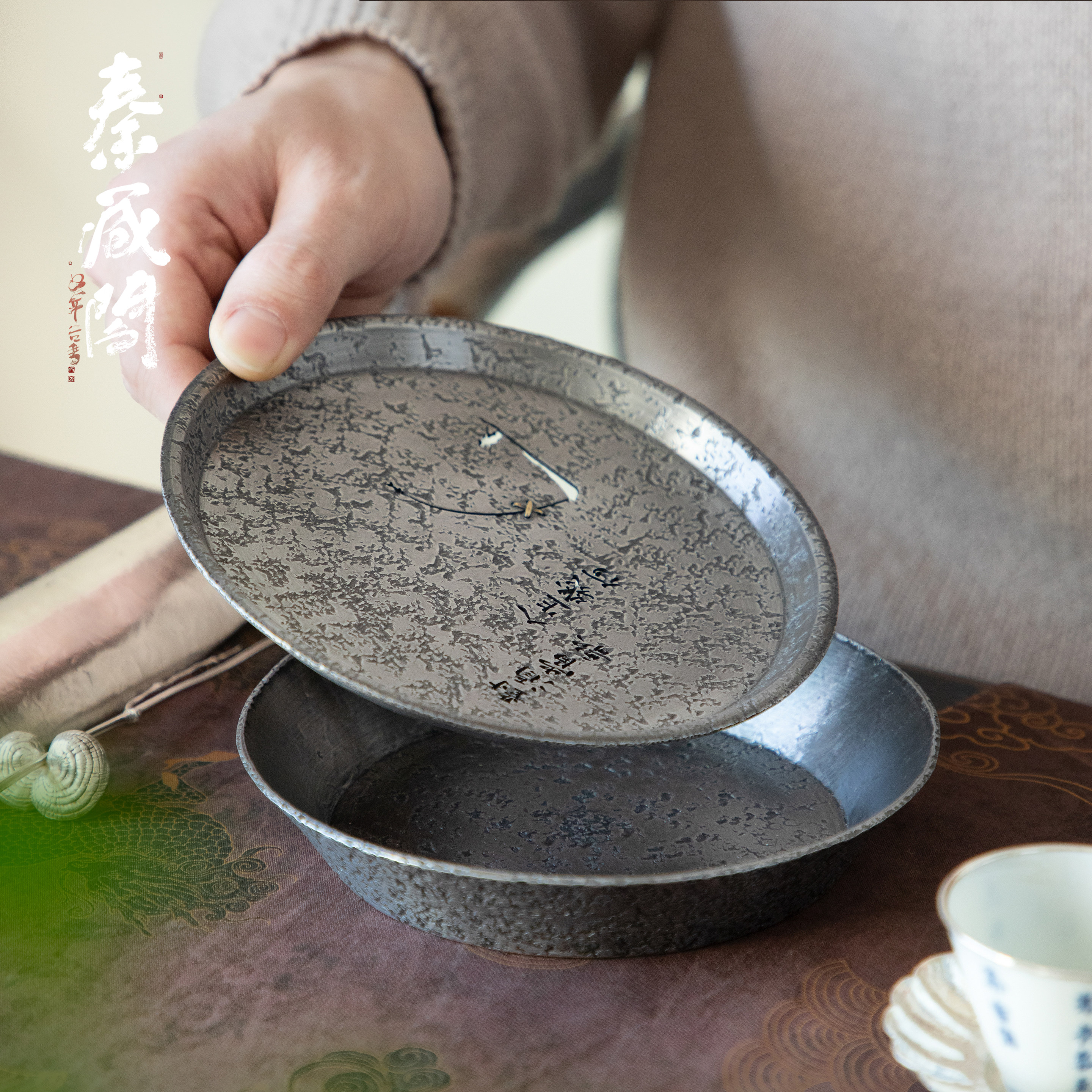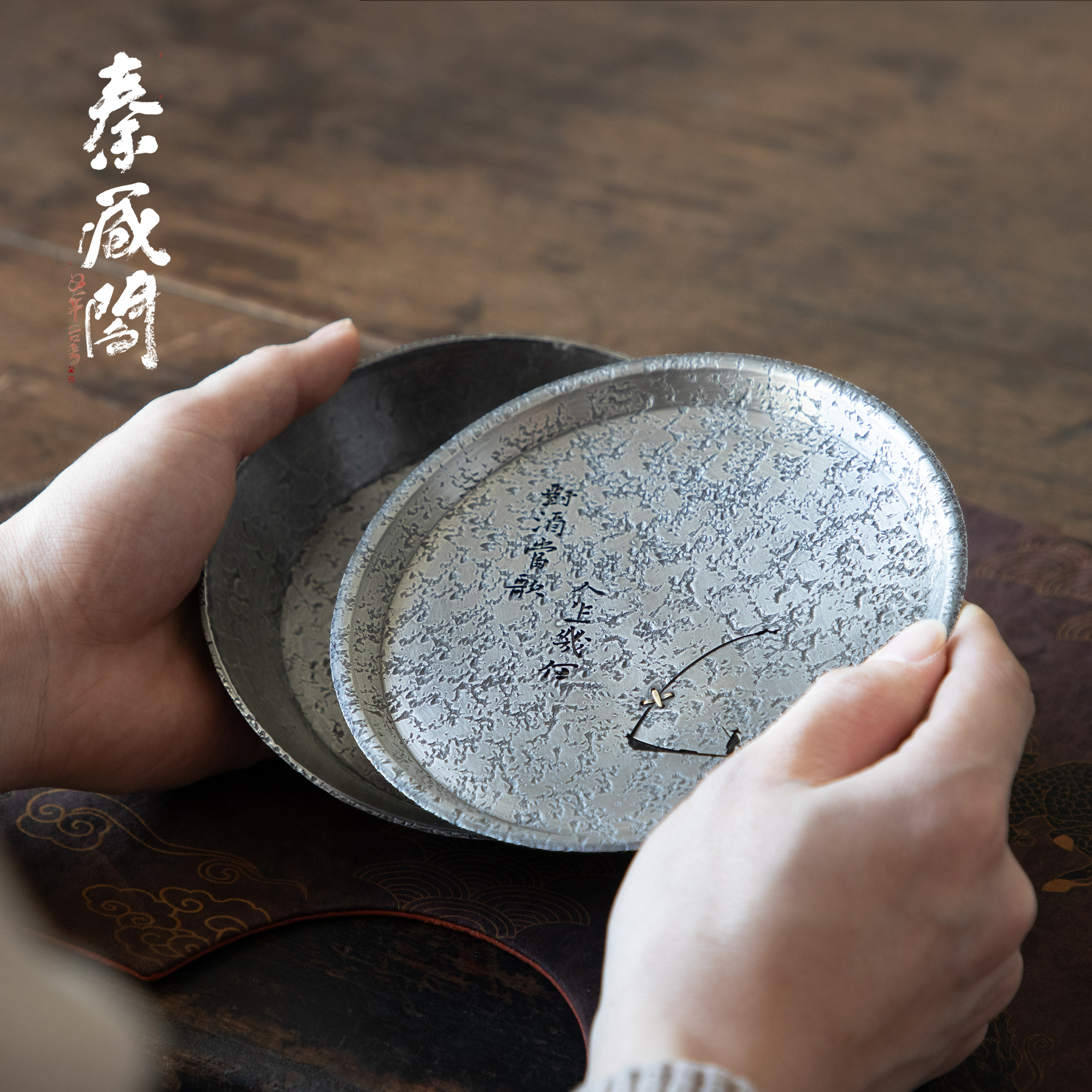 秦藏阁 短歌行纯锡壶承干泡台高端诧寂风手工储水茶盘壶托150ml