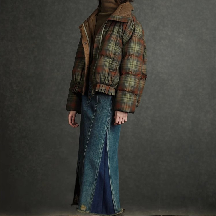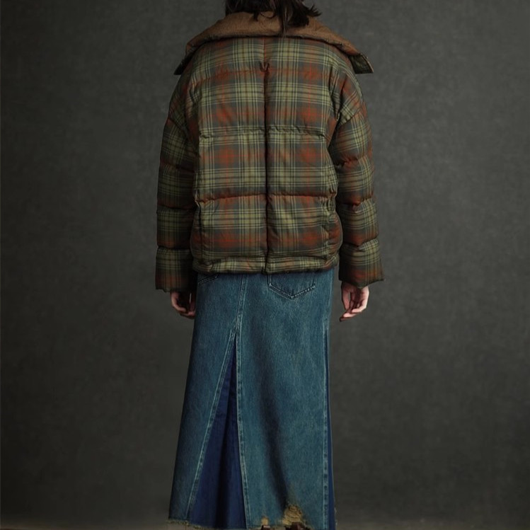 现货速发达家复古2023年冬季棉质混纺英伦格纹羽绒服女DAWW111041