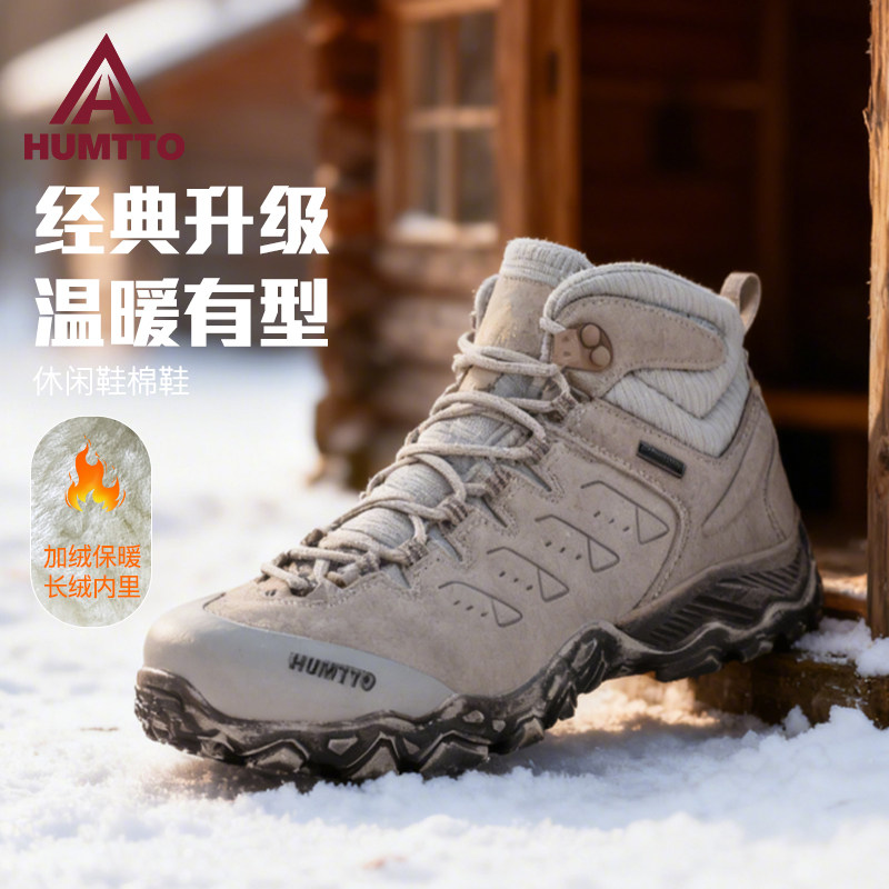 悍途高帮女鞋秋冬季加绒老爹鞋厚底增高休闲运动鞋户外徒步登山鞋