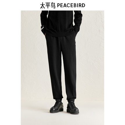 太平鸟男装 休闲裤男黑色秋新款裤装舒适长裤潮牌裤装百搭运动裤