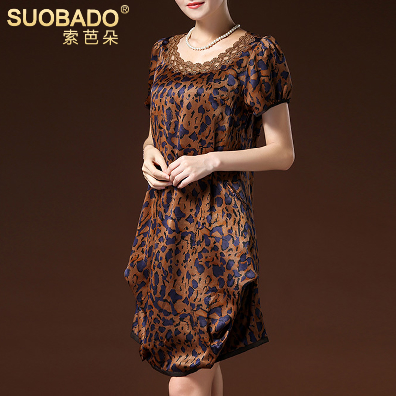 断码特价龟纹香云纱真丝连衣裙莨绸中老年妈妈装豹纹桑蚕女裙