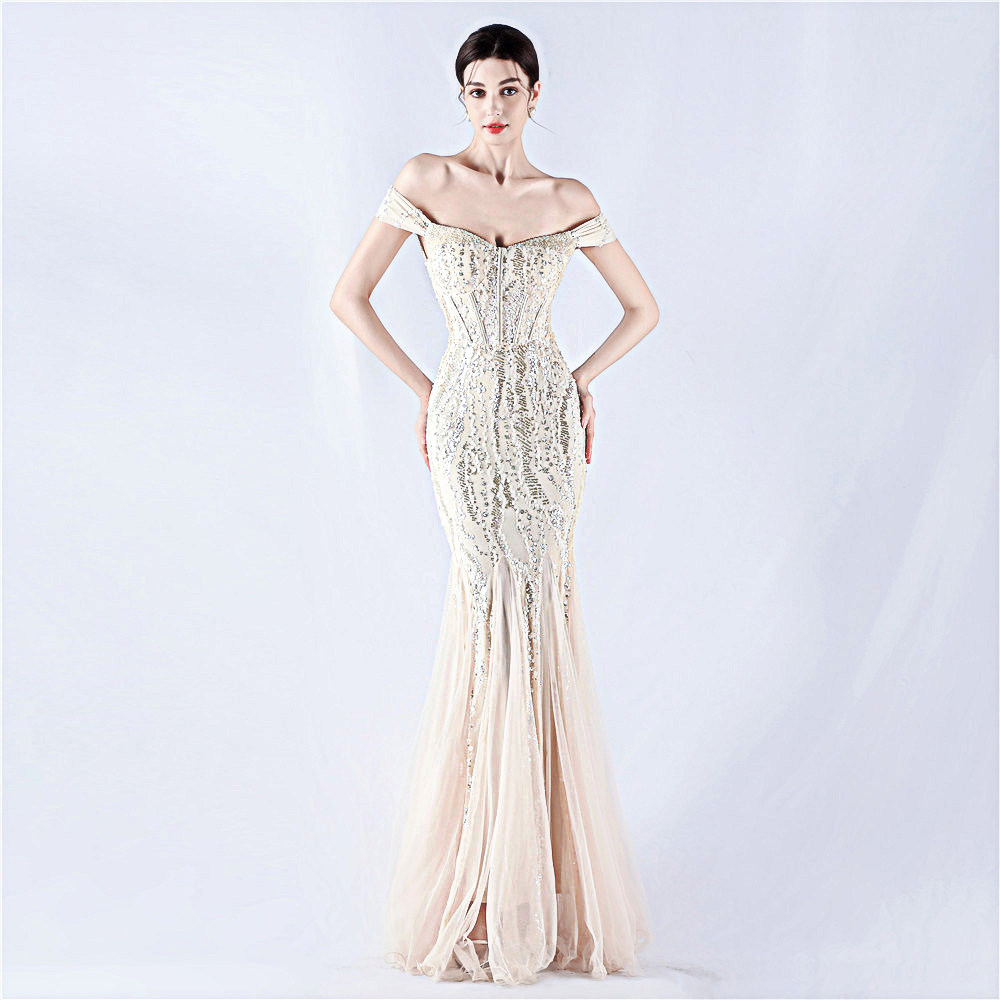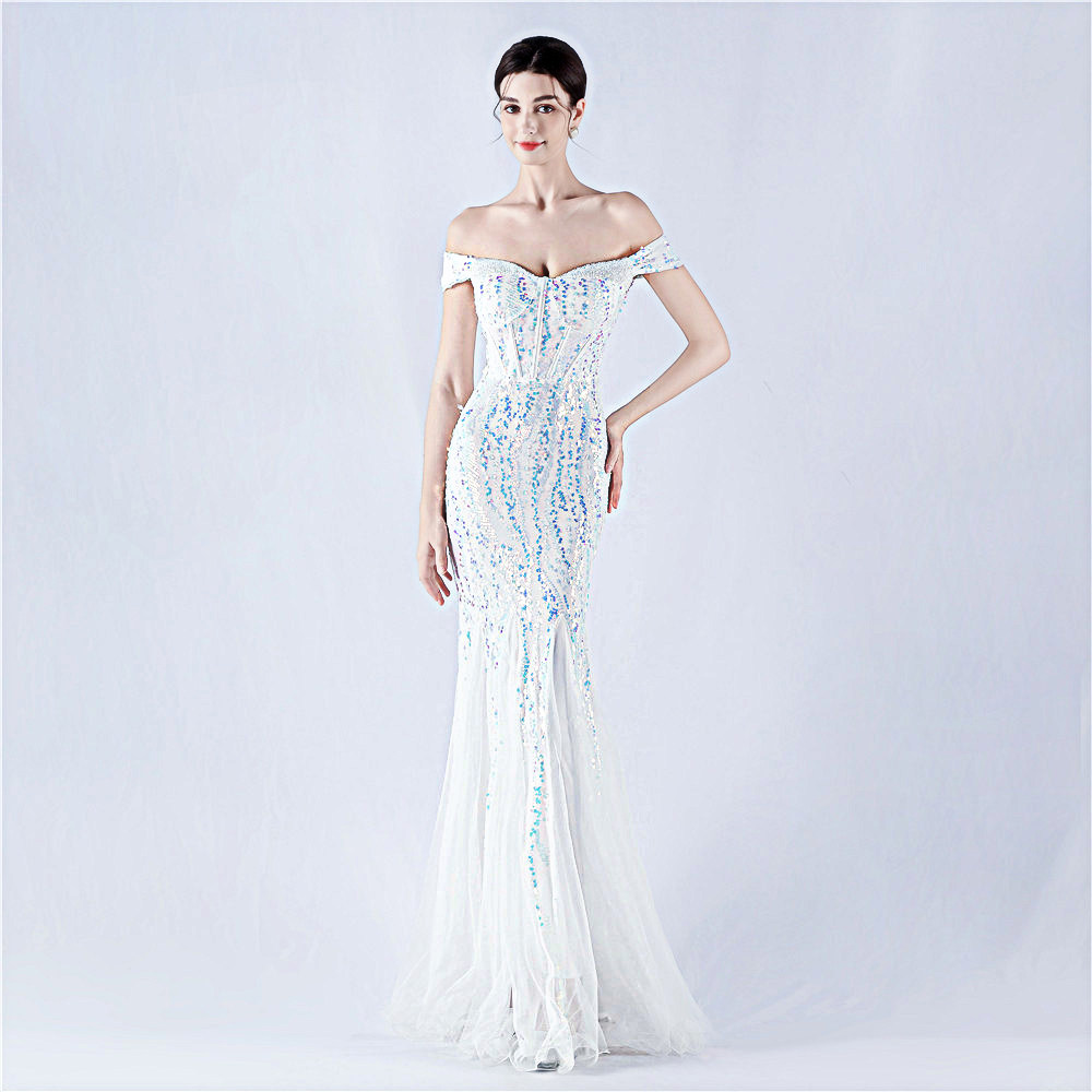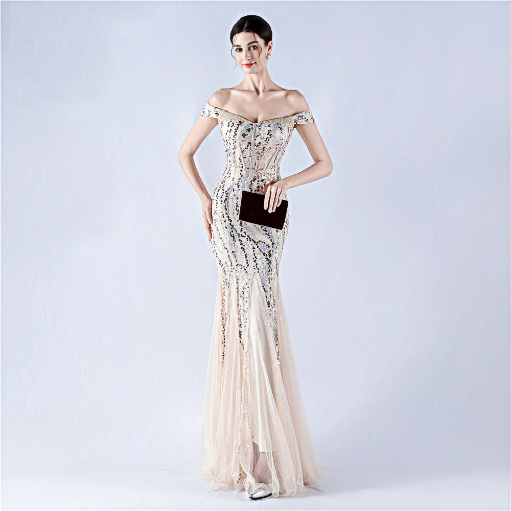 法式小众晚礼服裙女气质轻奢高级感高端精致名媛一字肩鱼尾连衣裙