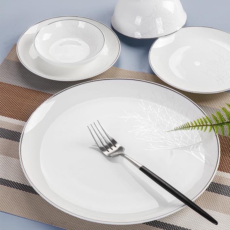 高档餐具套装骨瓷碗盘家用轻奢现代纯白碗碟套装碗筷组合陶瓷碗具