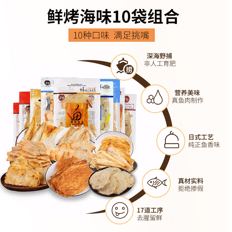 元臻10袋孕妇即食海鲜特产鱼片干