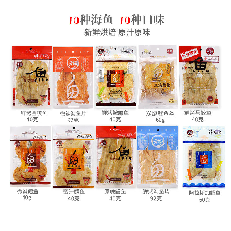 元臻鱼片干烤鱼片10袋鳗鱼鳕鱼片鱼干孕妇零食即食海鲜干货特产