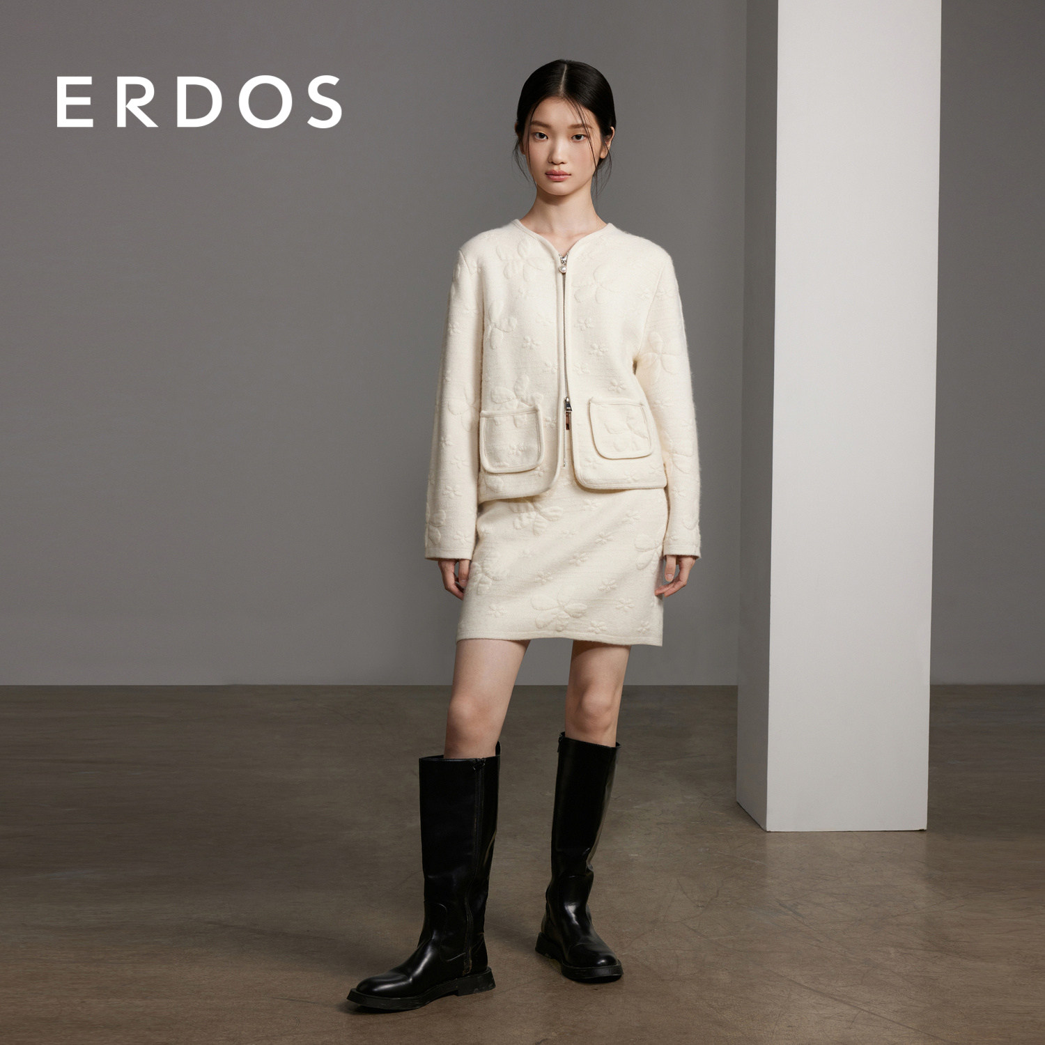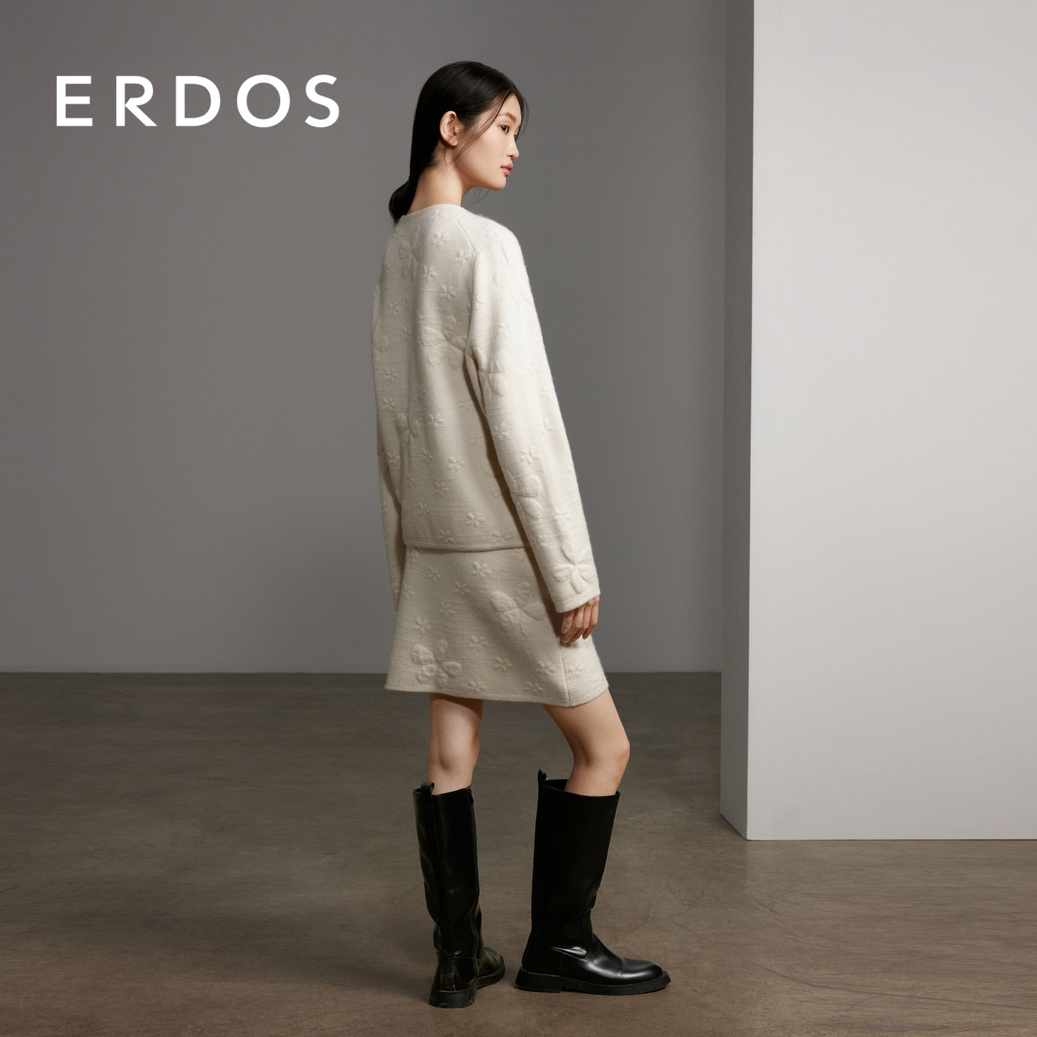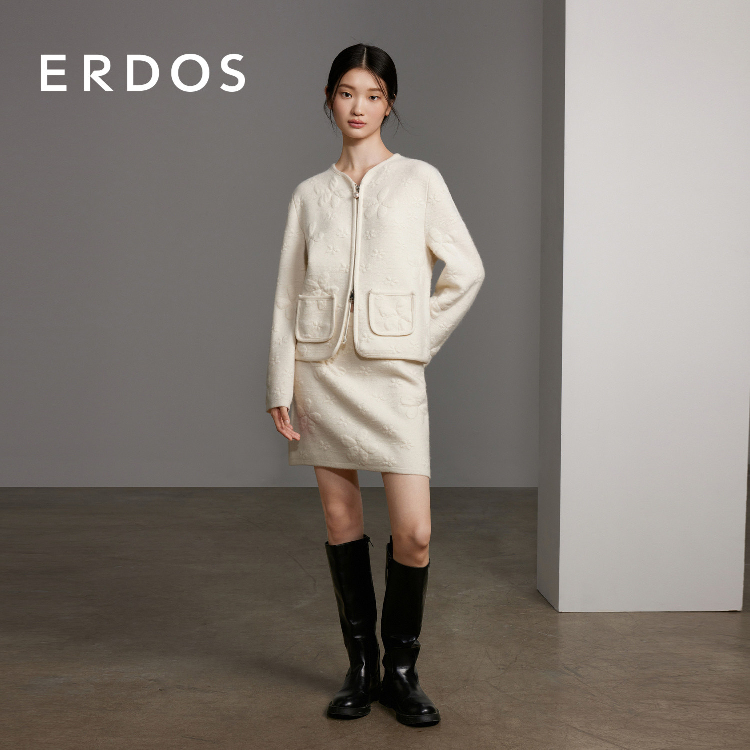 【博主同款】ERDOS白色翻花半身裙女春浮雕提花针织短裙