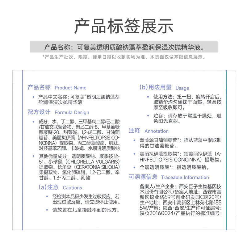 可复美透明质酸钠次抛精华液15支