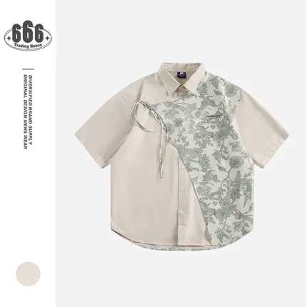 N-52TRW设计感男装新中式短袖衬衫男女宽松夏季半袖潮流上衣CS130
