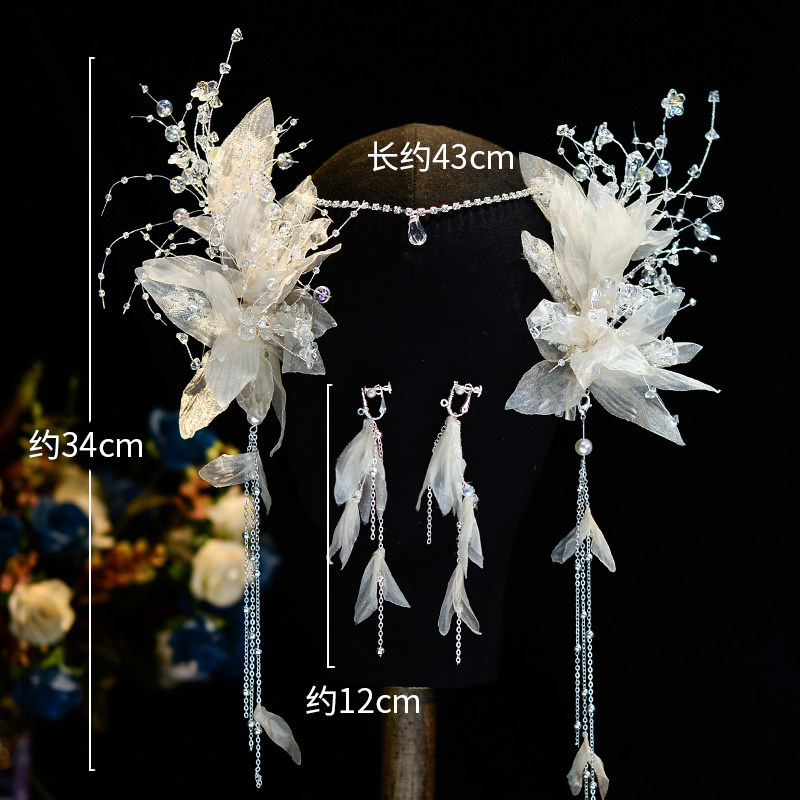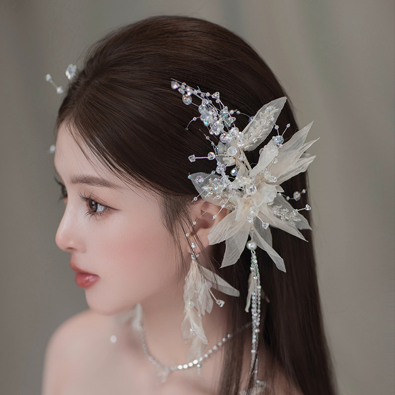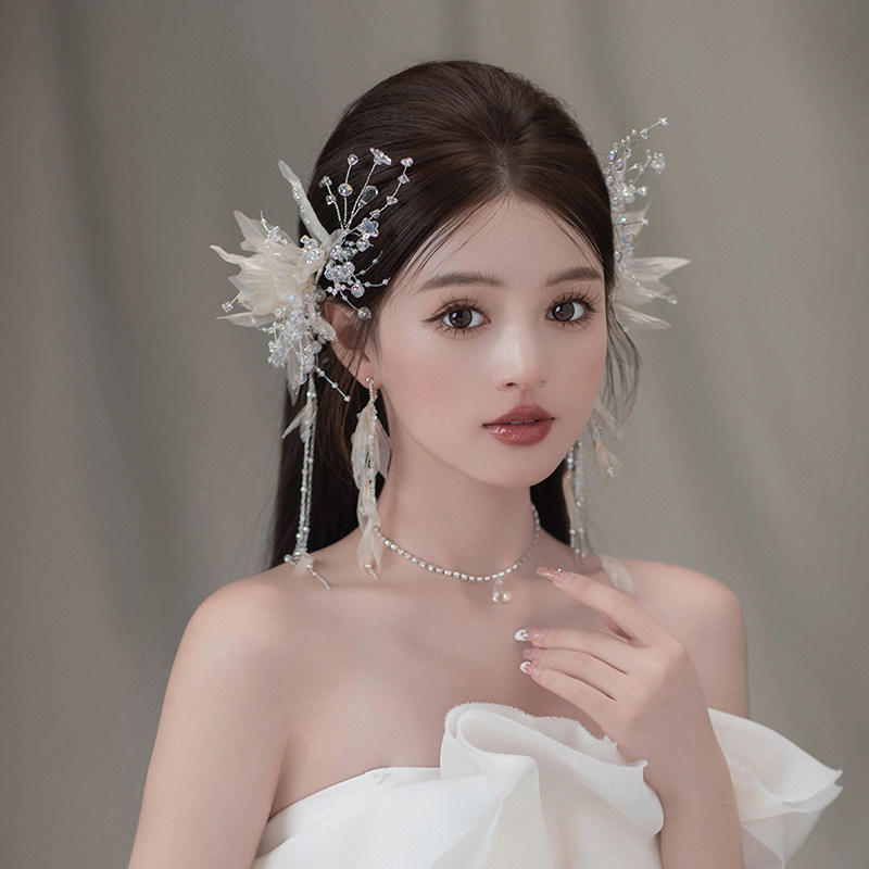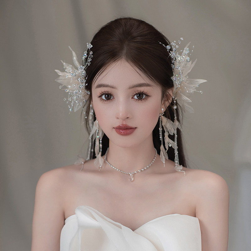 新娘头饰韩式流苏头饰发饰婚纱礼服头饰结婚高级晚礼森系对夹超仙
