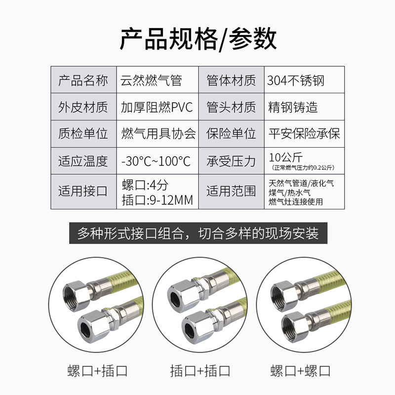 高压防爆304不锈钢燃气管天然气管煤气管热水器灶具波纹金属软管