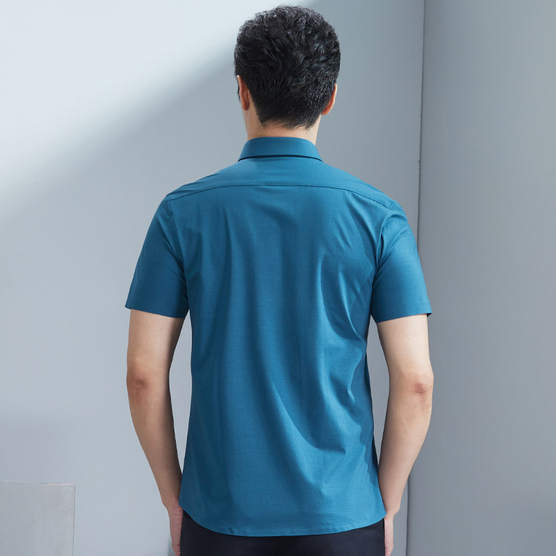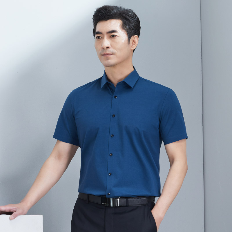 红都夏季新款短袖衬衫男薄款弹力棉质中年男士纯色不易皱半袖衬衫