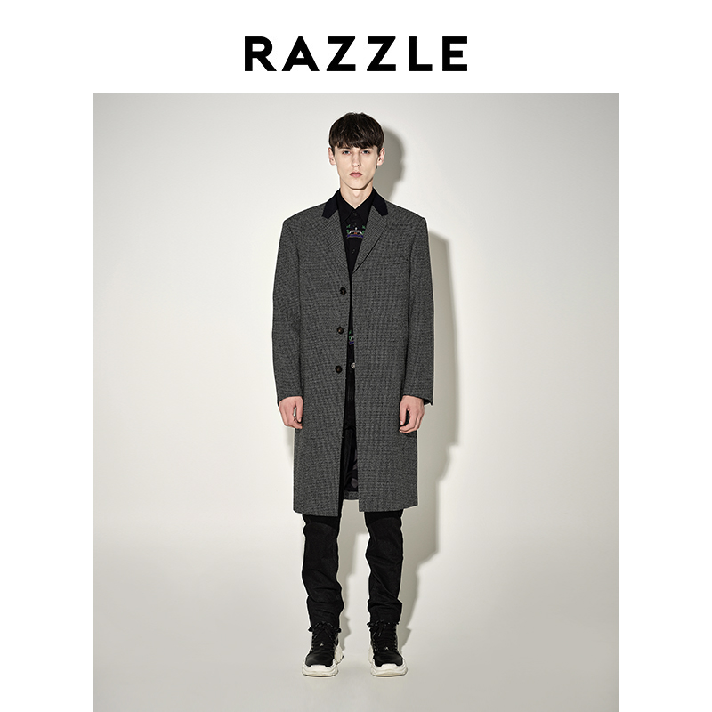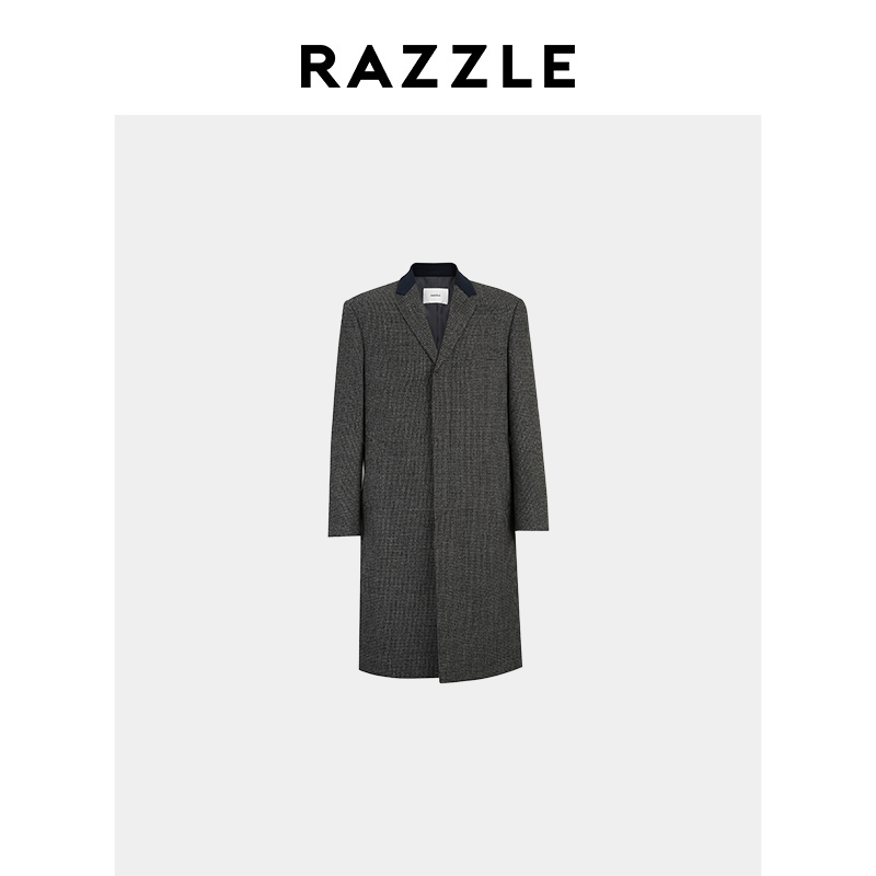 RAZZLE 地素男装中长大衣冬季黑色双色领大衣