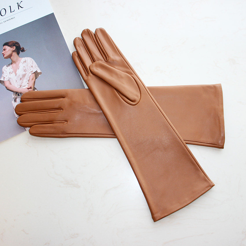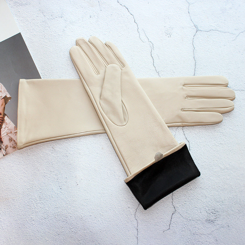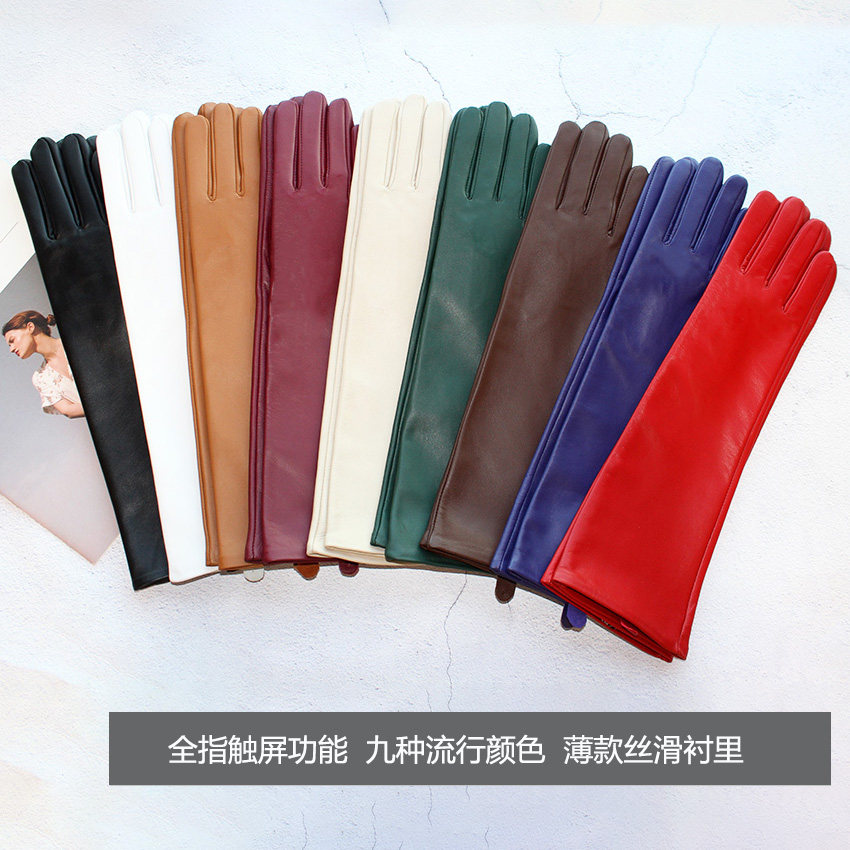 长皮手套女士真皮长款可触屏彩色羊皮2025年春开车薄款丝里手袖套