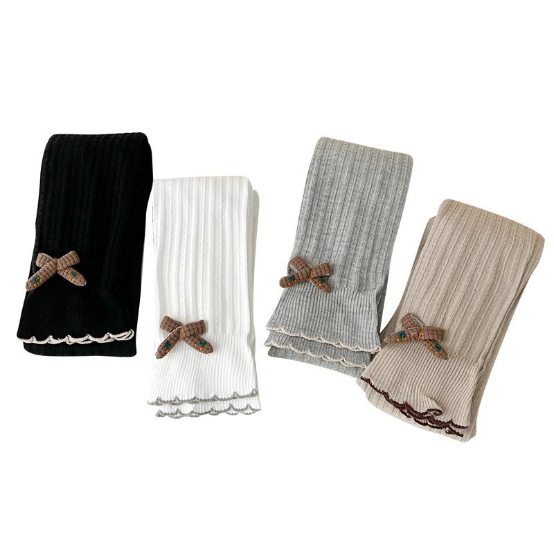 2025春款童裤女九分裤蝴蝶结女童打底裤儿童连体裤针织婴儿童装棉