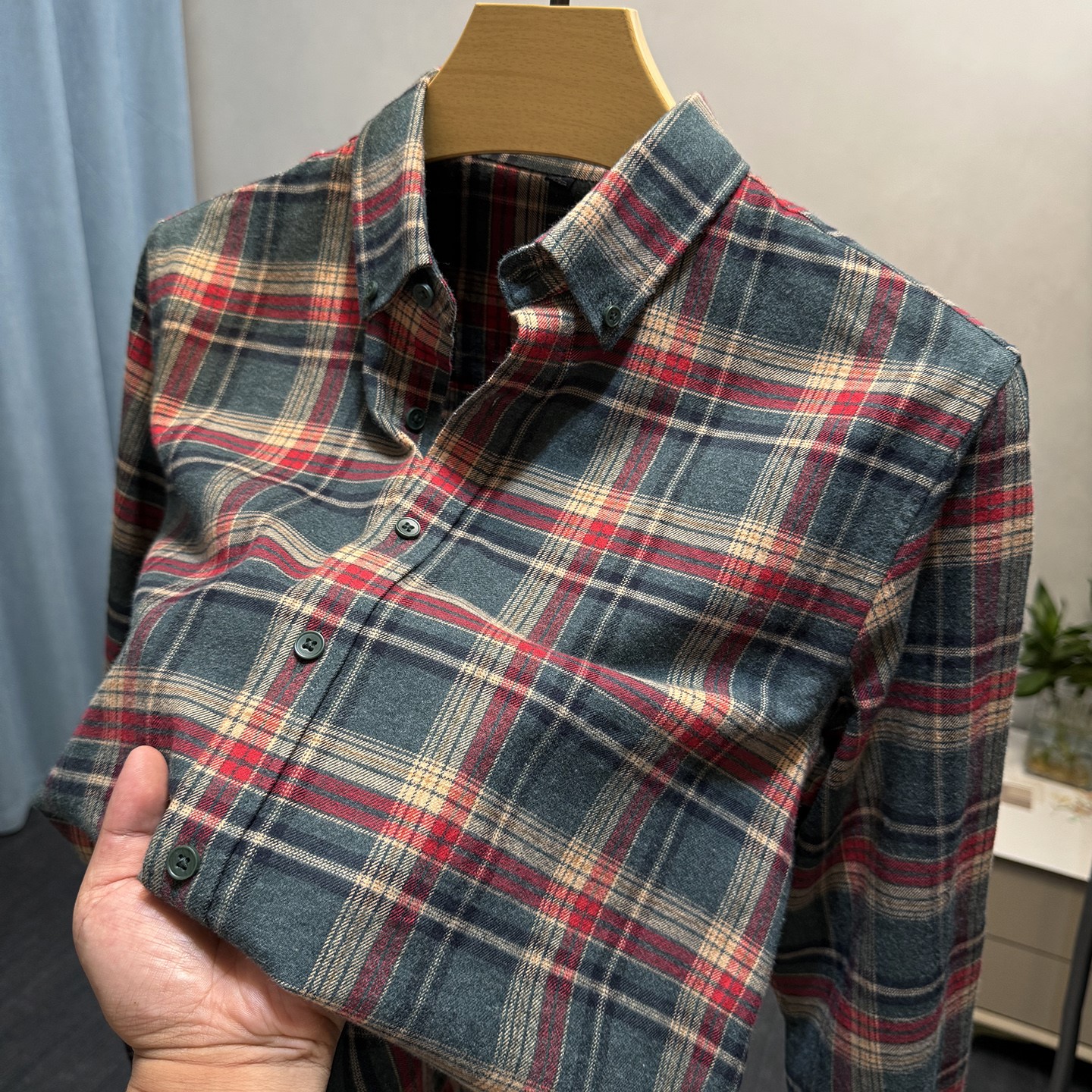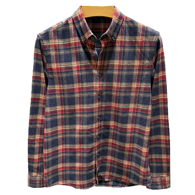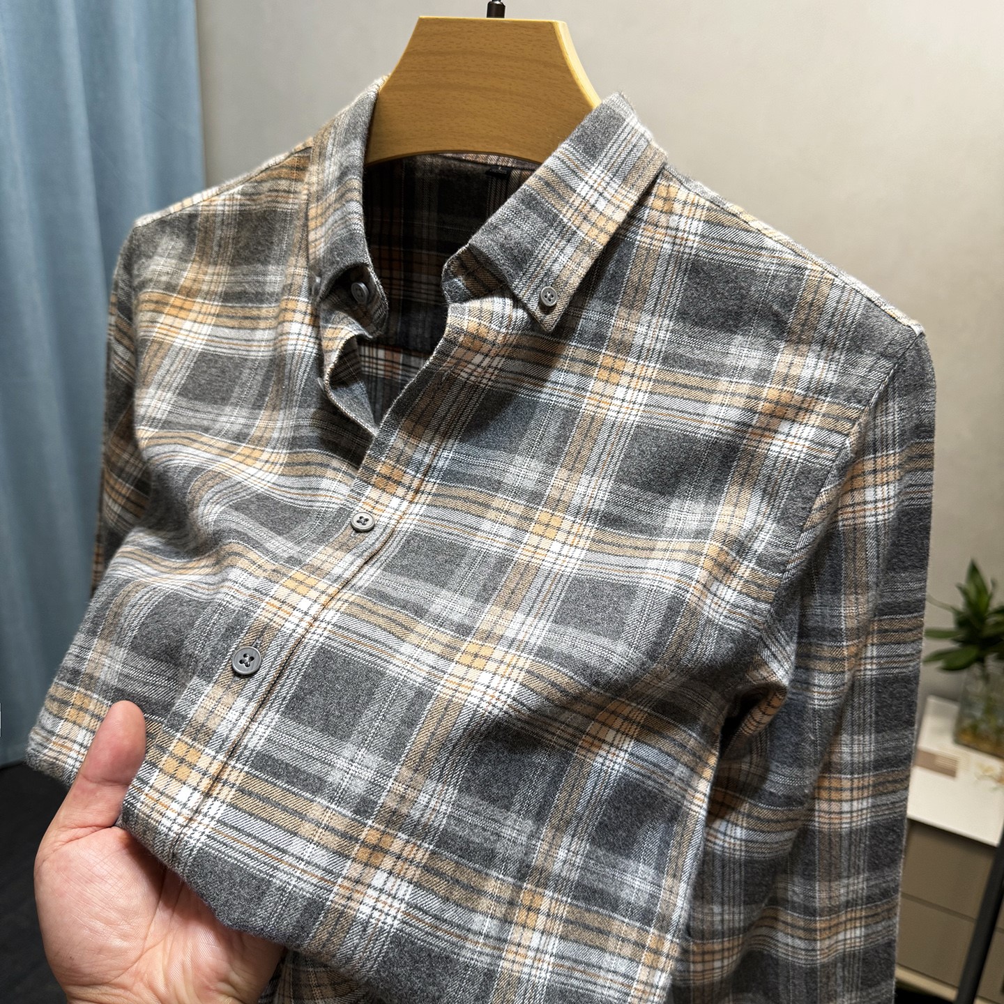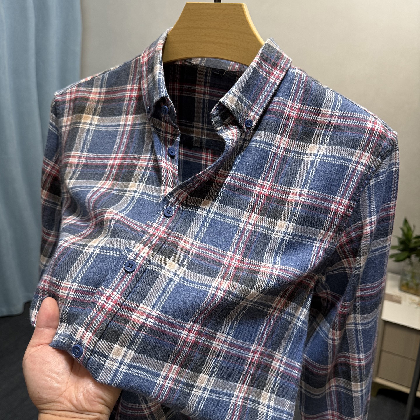 纯棉磨毛格子衬衫男长袖秋冬季中青年男士扎染渐变色外搭爸爸衬衣