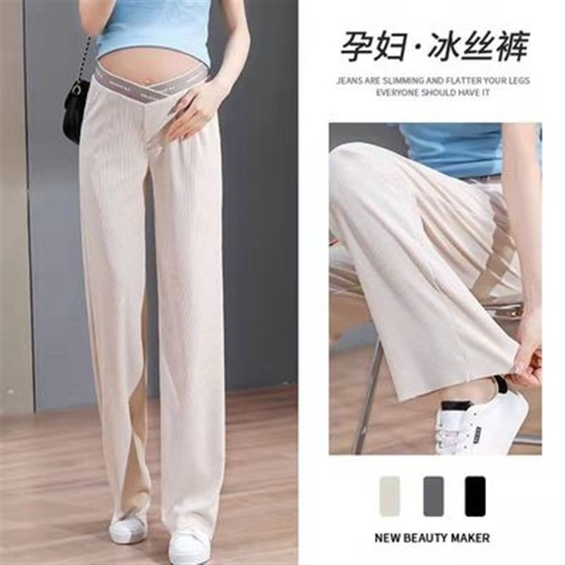 孕妇冰丝阔腿裤2025春夏新款时尚外穿休闲百搭垂感宽松低腰长裤子