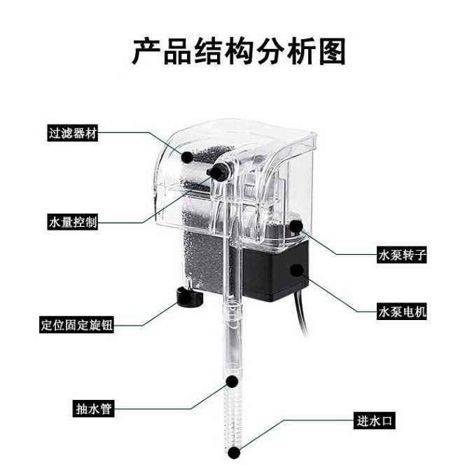 新款直销鱼缸过滤器 三合一潜水泵冲氧泵小型鱼缸外置瀑布过滤设