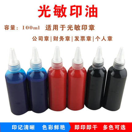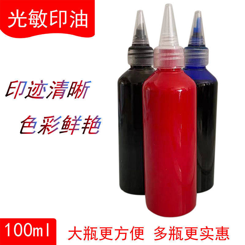 光敏印油红色大瓶100ml发票章公章印泥印台填充墨水速干蓝色黑色