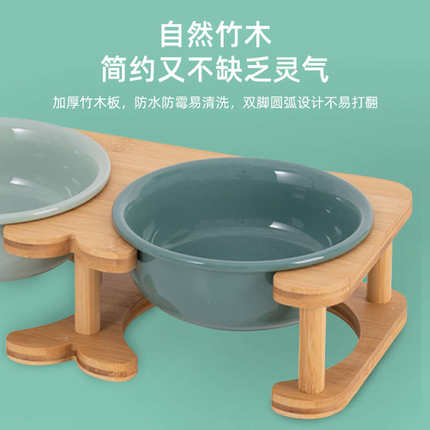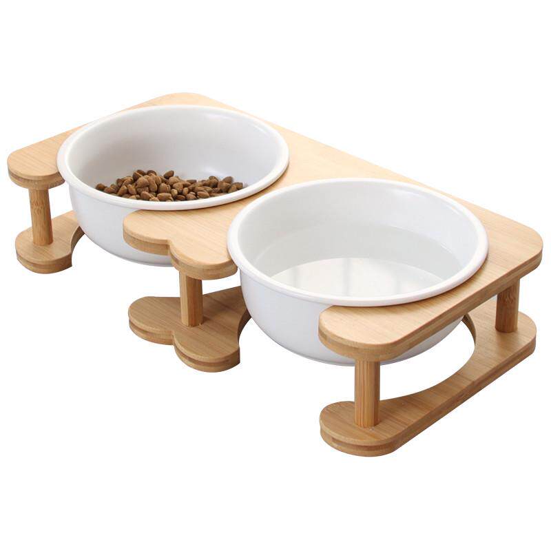 陶瓷狗碗中小型犬狗食盆防打翻柯基柴犬双碗保护颈椎水碗木架猫碗