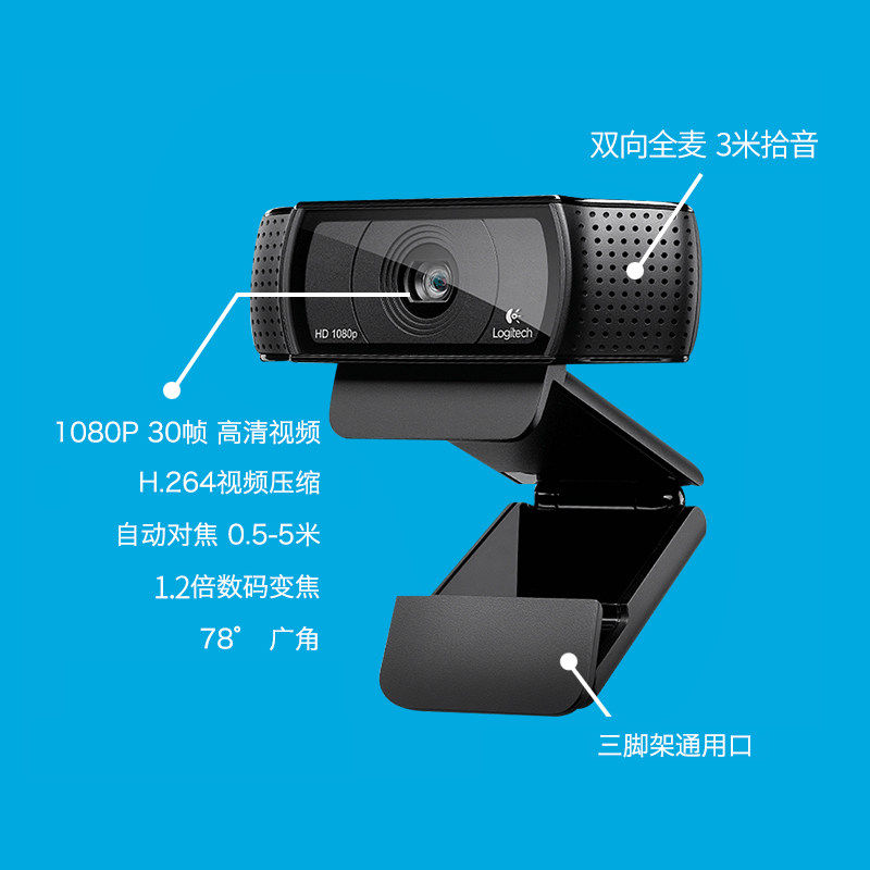 罗技C920 PRO高清摄像头电脑台式机带麦克风淘宝抖音直播美颜带货