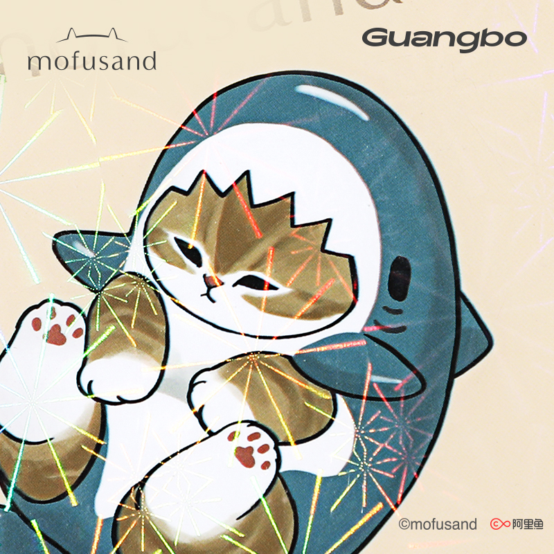 广博猫福珊迪周边镭射口袋本胶套本可爱卡通学生笔记本子横线本子80张mofusand萌宠猫咪卡通鲨鱼猫小学生文具