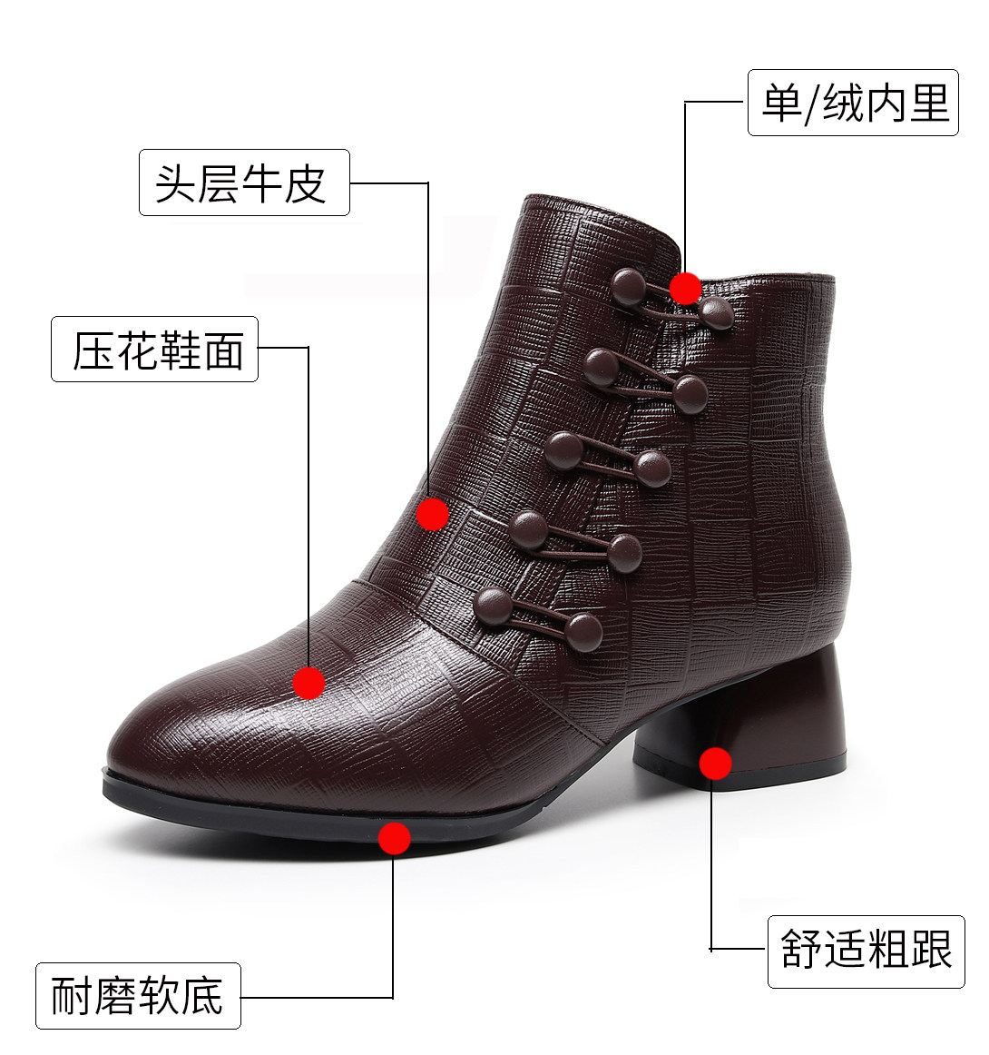 真皮春秋单靴女粗跟大码妈妈棉鞋