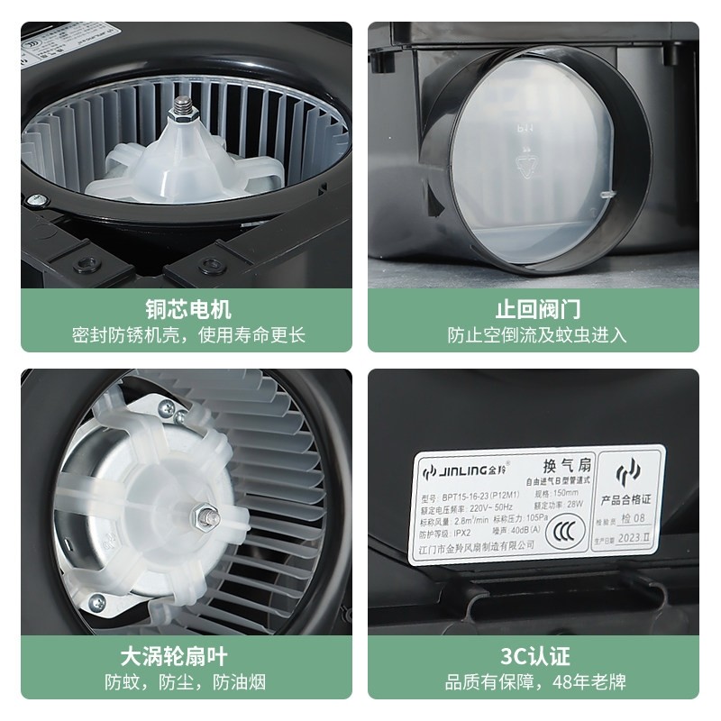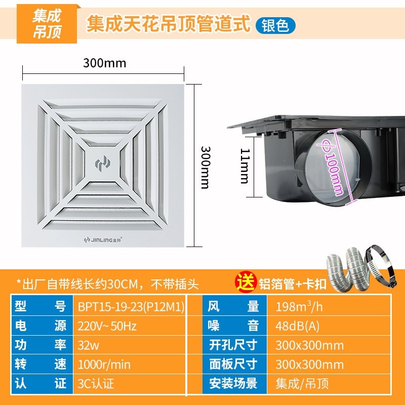 金羚排气扇铝扣板30*30厨房厕所扇天花管道吊顶排风扇卫生间换气