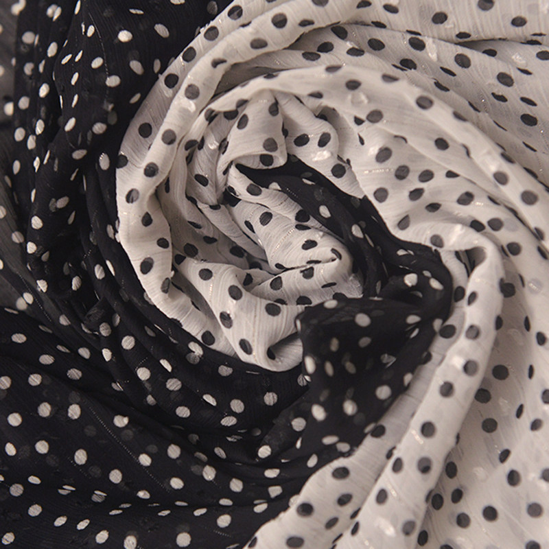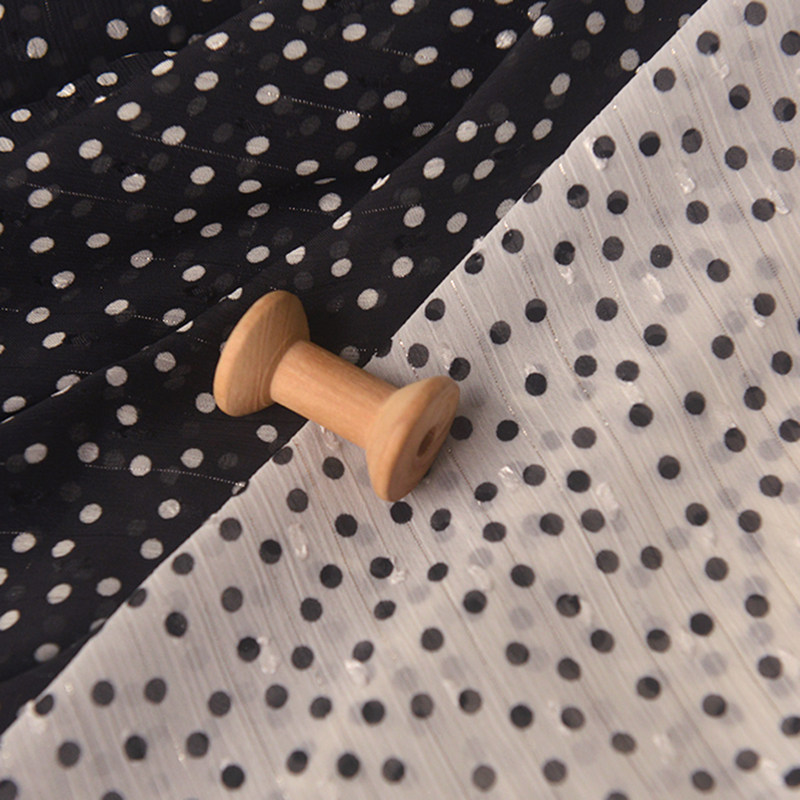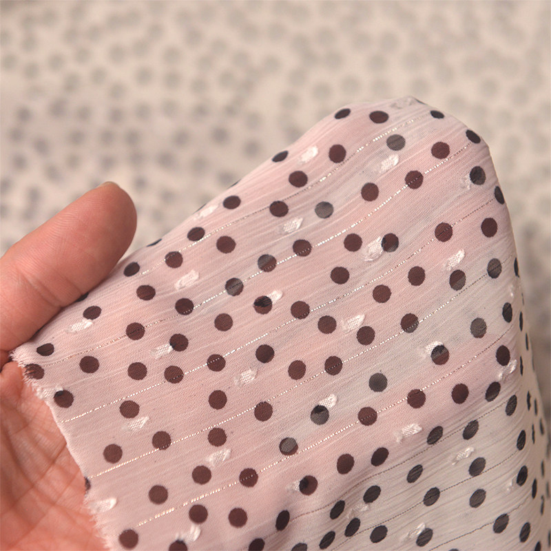 米白波点亮线提花小球褶皱雪纺布料 衬衫小礼服罩衫婚纱服装面料