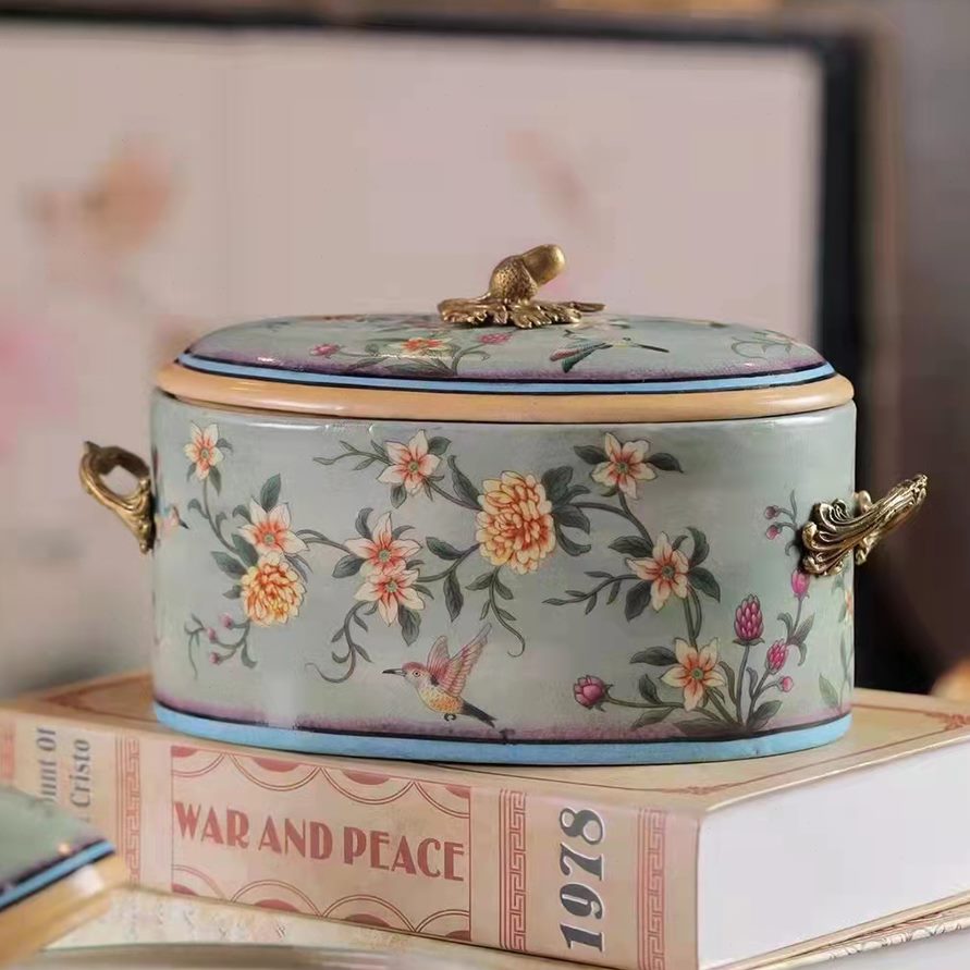 配奢华卧室客厅摆件铜花瓶陶瓷装饰欧式居家餐厅美式桌面花插复古