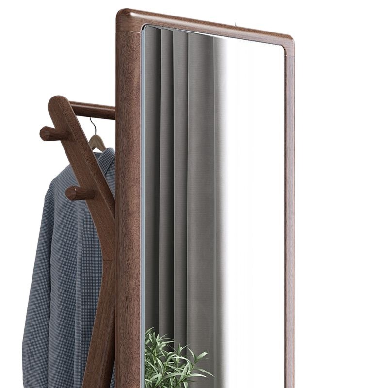 Lg现代实木可移动穿衣镜中式主卧全身镜挂衣架一体落地衣帽架带抽
