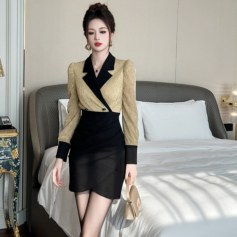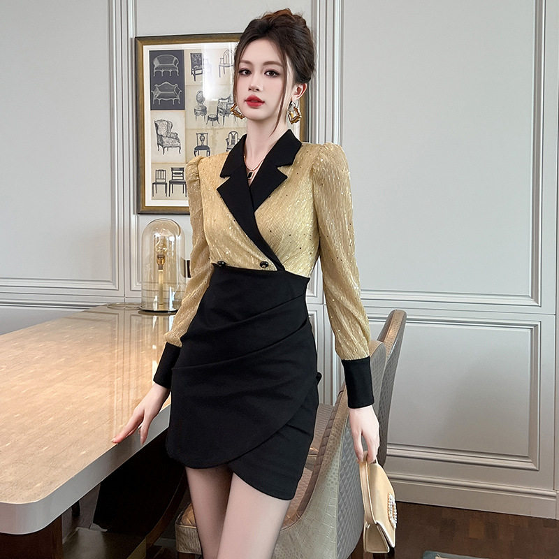 2026新款秋冬气质连衣裙名媛御姐万种风情精致西装裙高人气礼服裙