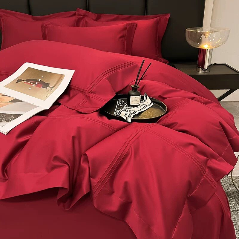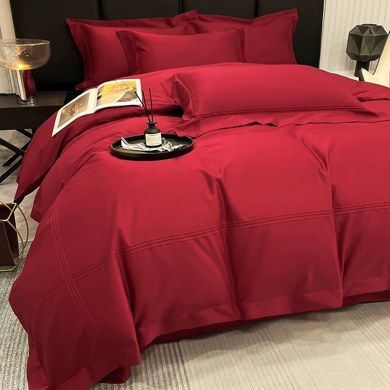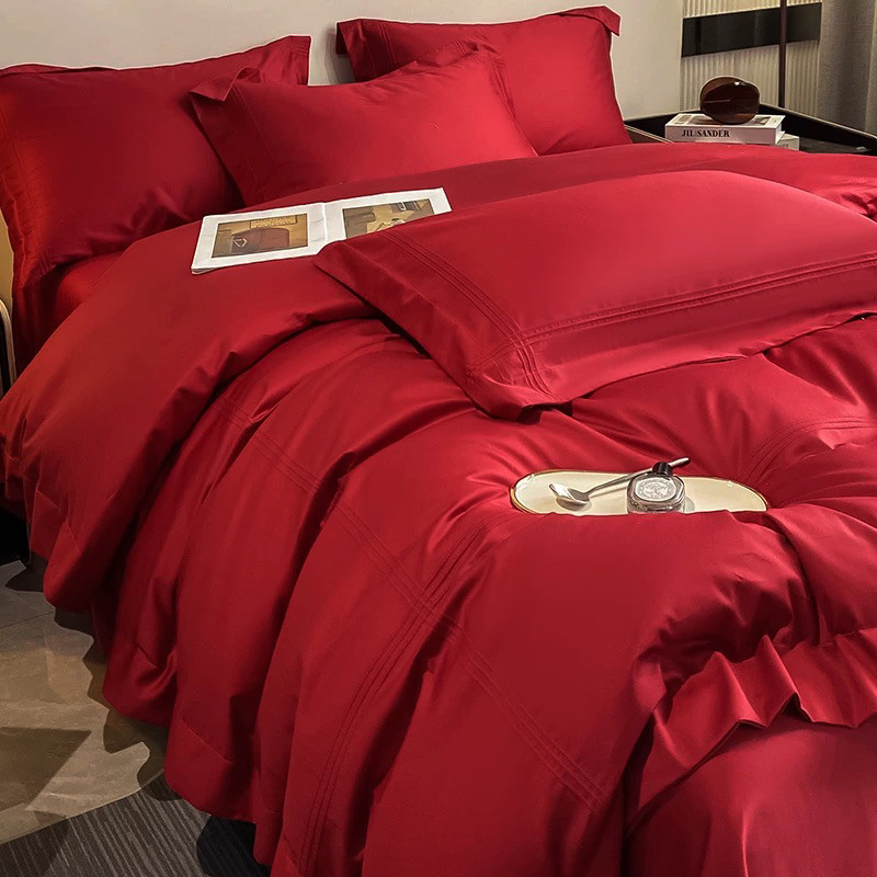 简约北欧风100支结婚四件套红色
